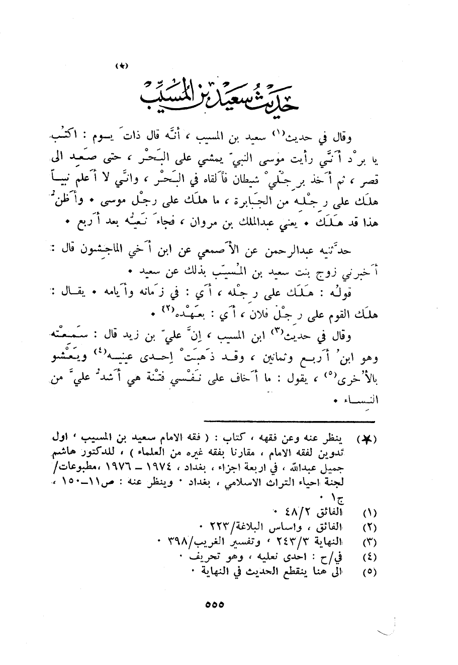 وَقَالَ فِي حَدِيث سعيد بن الْمسيب أَنه قَالَ ذَات يَوْم: اكتبق يَا برد أَنِّي رَأَيْت مُوسَى النبى يمشي على الْبَحْر حَتَّى صعد الى قصر ثمَّ أَخذ برجلي شَيْطَان فَأَلْقَاهُ فِي الْبَحْر واني لَا أعلم نَبيا هلك على رجله من الْجَبَابِرَة مَا هلك على رجل مُوسَى. وأظن هَذَا قد هلك. يَعْنِي عبد الملك بن مَرْوَان فجَاء نعيه بعد أَربع.