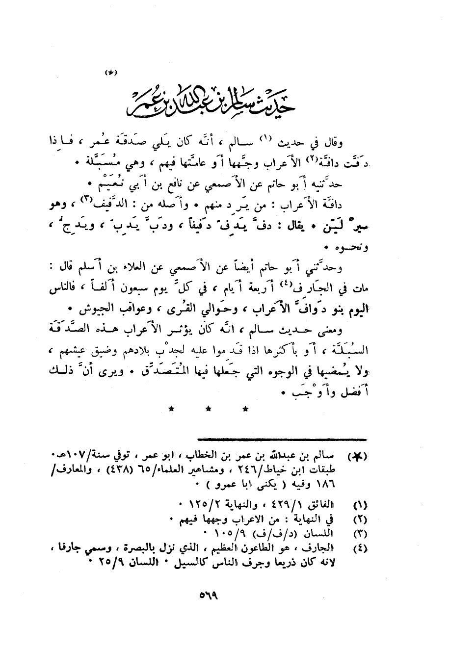 وَقَالَ فِي حَدِيث سَالم أَنه كَانَ يَلِي صَدَقَة عمر فاذا دفت دافة الْأَعْرَاب وَجههَا أَو عاقتها فيهم وَهِي مسبلة.