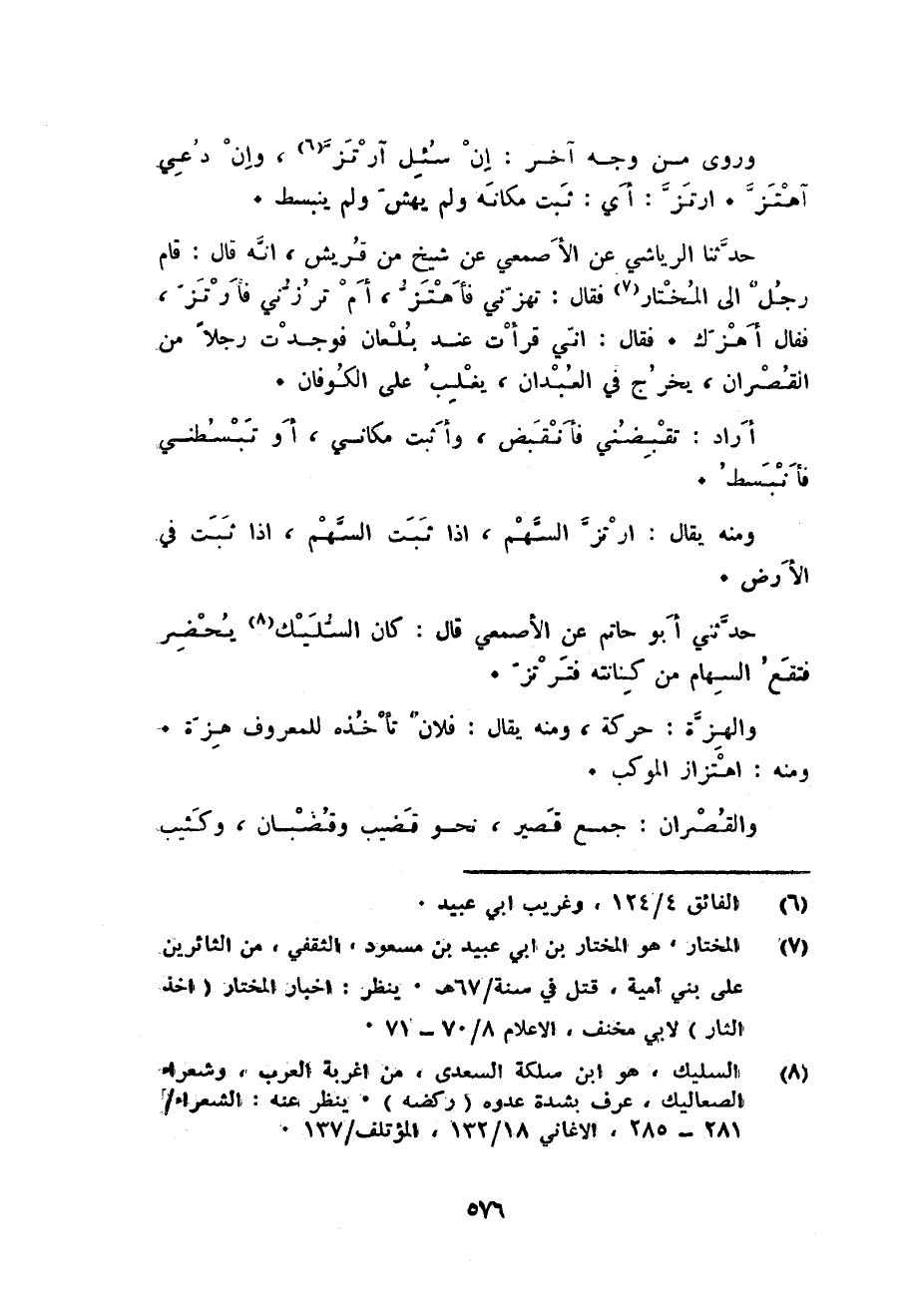 حَدثنَا الرياشي عَن الْأَصْمَعِي عَن شيخ من قُرَيْش انه قَالَ: قَامَ رجل الى الْمُخْتَار فَقَالَ: تهزني فأهتز أم ترزني فأرتز فَقَالَ أهزك. فَقَالَ: اني قَرَأت عِنْد بِلعان فَوجدت رجلا من القصران يخرج فِي العبدان يغلب على الكوفان.
