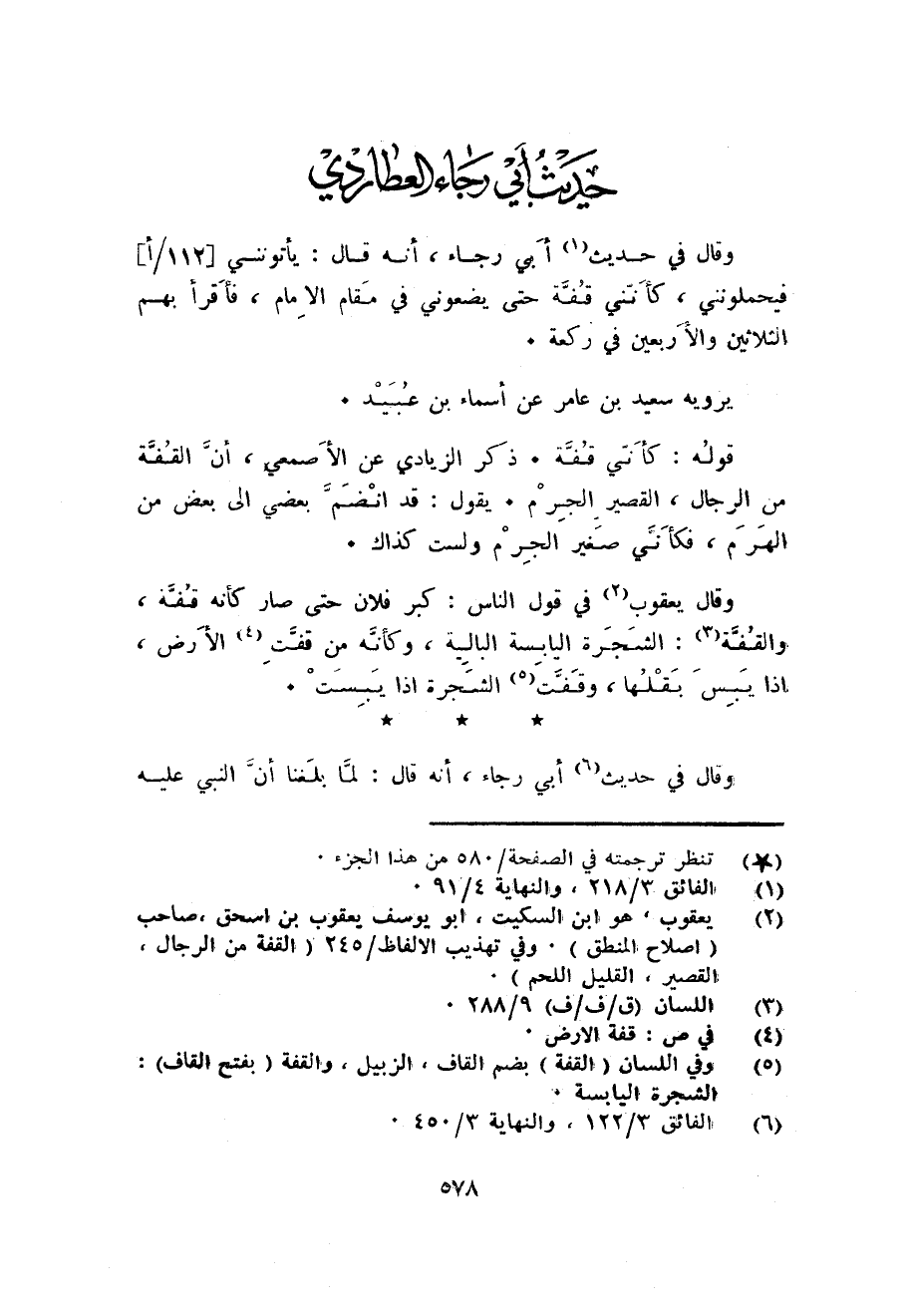 وَقَالَ فِي حَدِيث أبي رَجَاء أَنه قَالَ: لما بلغنَا أَن النبى عَلَيْهِ