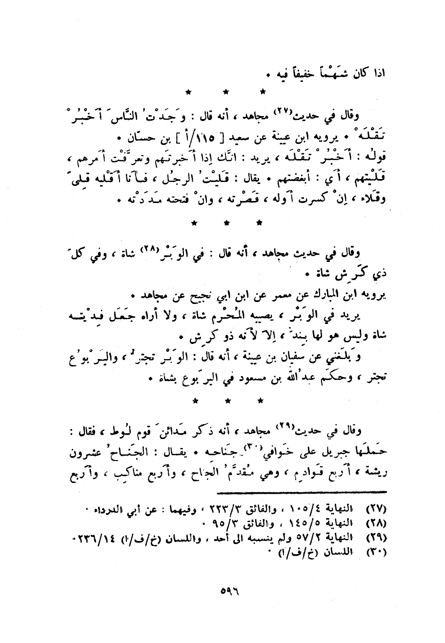 يرويهِ ابْن الْمُبَارك عَن معمر عَن ابْن ابي نجيح عَن مُجَاهِد. يُرِيد فِي الْوَبر يُصِيبهُ الْمحرم شَاة وَلَا أرَاهُ جعل فديته شَاة وَلَيْسَ هُوَ لَهَا بند الا لِأَنَّهُ ذُو كرش.