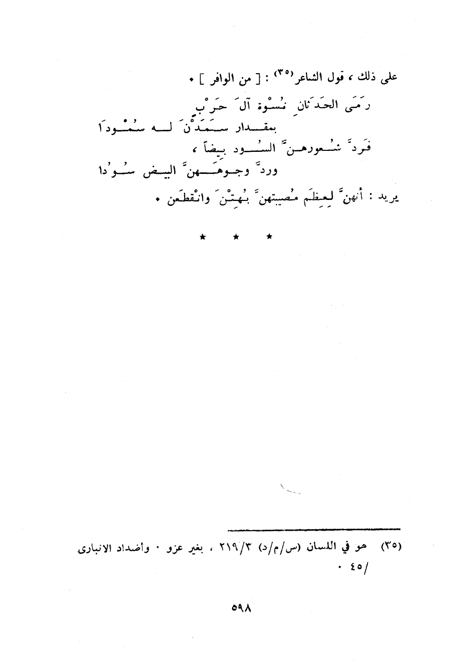 على ذَلِك قَول الشَّاعِر: من الوافر ... رمى الْحدثَان نسْوَة آل حَرْب ... بِمِقْدَار سمدن لَهُ سمودا