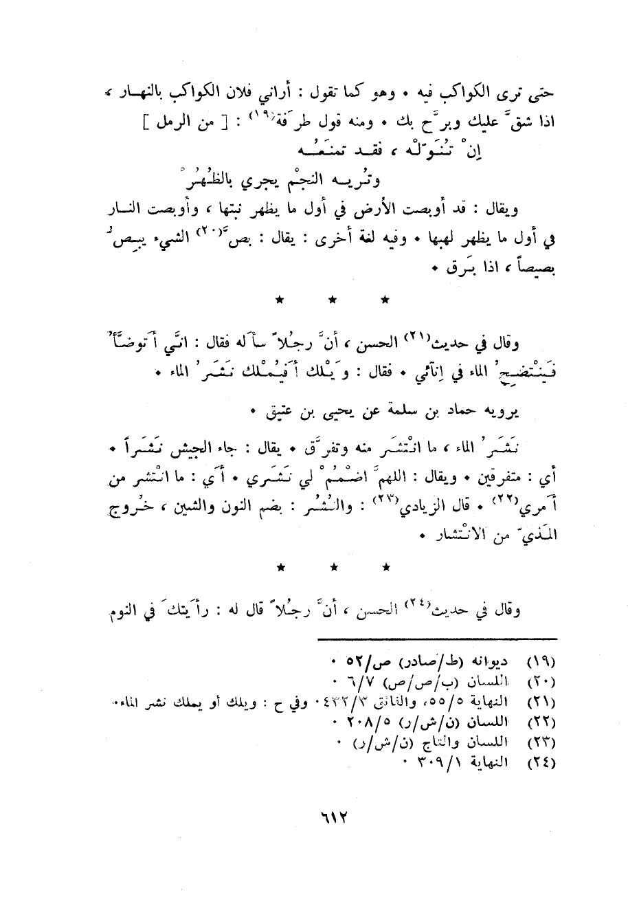 وَقَالَ فِي حَدِيث الْحسن أَن رجلا سَأَلَهُ فَقَالَ: اني اتوضأ فينتضح المَاء فِي انآئي. فَقَالَ: وَيلك أفيملك نشر المَاء.