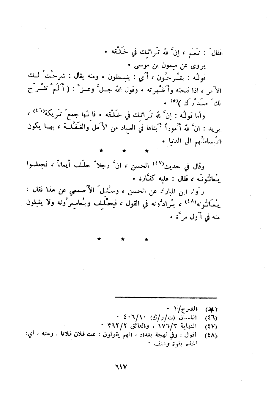 رَوَاهُ ابْن الْمُبَارك عَن الْحسن وَسُئِلَ الْأَصْمَعِي عَن هَذَا فَقَالَ: يعاتونه يرادونه فِي القَوْل فَيحلف ويعاسرونه وَلَا يقبلُونَ مِنْهُ فِي أول مرّة.