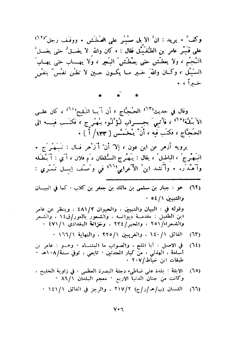يرويهِ أَزْهَر عَن ابْن عون إِلَّا أَن أَزْهَر قَالَ: نبهرج البهرج الْبَاطِل يُقَال: بهرج السُّلْطَان دم فلَان أَي: أبْطلهُ وأهدره. وَأنْشد أبن الْأَعرَابِي فِي وصف إبل تسري: