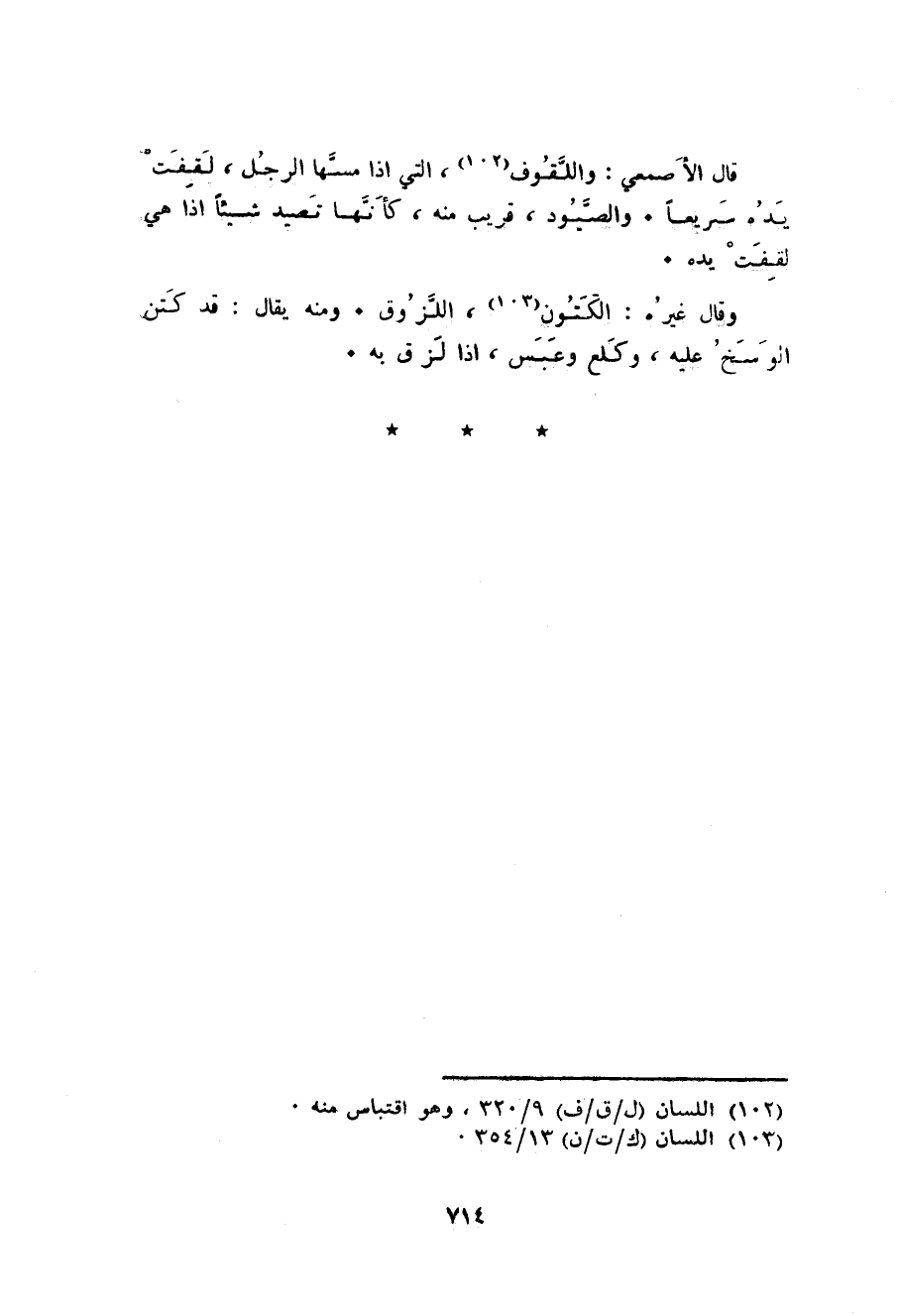 قَالَ الْأَصْمَعِي: واللقوف الَّتِي إِذا مَسهَا الرجل لقفت يَده سَرِيعا والصيود قريب مِنْهُ كَأَنَّهَا تصيد شَيْئا إِذا هِيَ لقفت يَده.