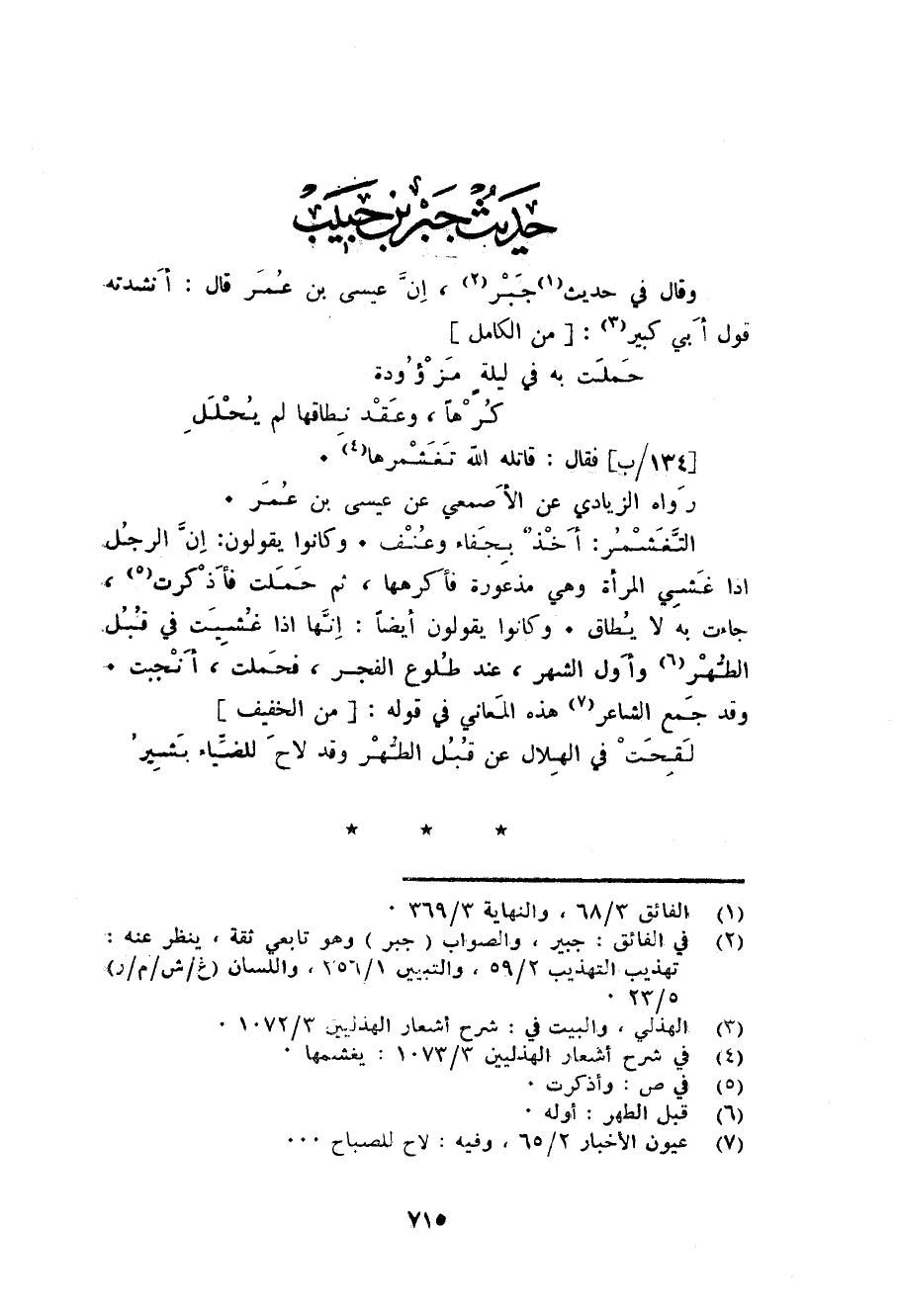 وَقَالَ فِي حَدِيث جبر إِن عِيسَى بن عمر قَالَ: أنشدته قَول أَبى كَبِير: من الْكَامِل