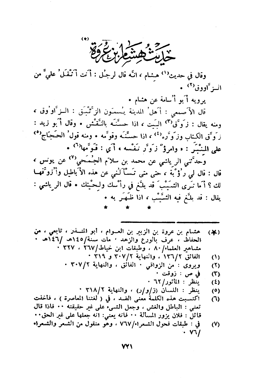 وَقل فِي حَدِيث هِشَام أَنه قَالَ لرجل: أَنْت أثقل عَليّ من الزاووق. يرويهِ أَبُو أُسَامَة عَن هِشَام.