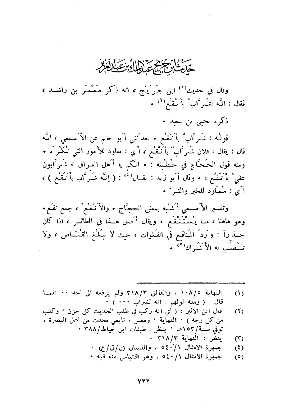 حَدِيث ابْن جريح عبد الْملك بن عبد الْعَزِيز