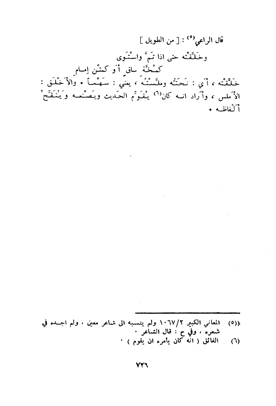 قَالَ الرَّاعِي: من الطَّوِيل ... وخلقته حَتَّى إِذا تمّ واستوى ... كمخة سَاق أَو كمتن إِمَام ...