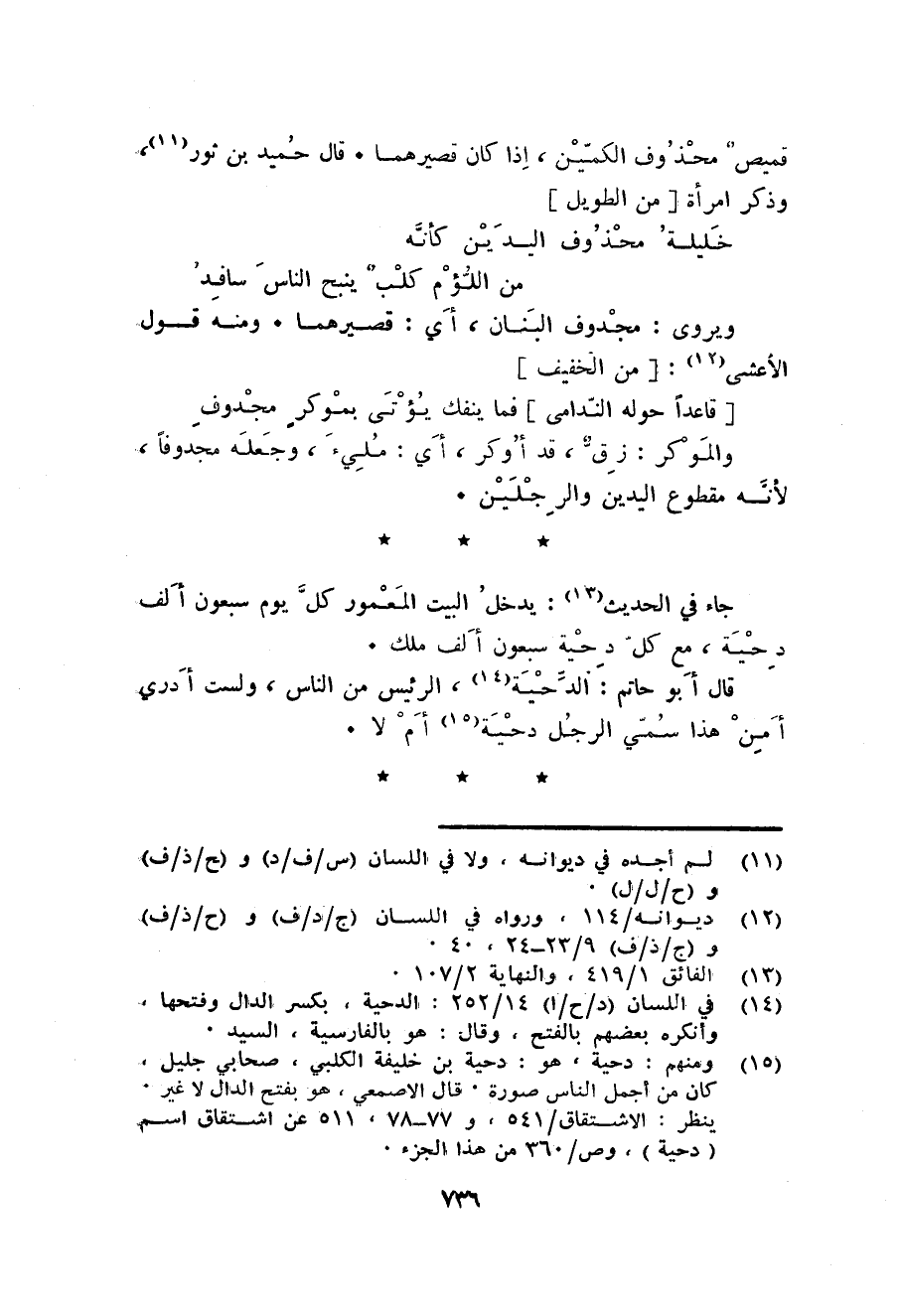 قَمِيص مَحْذُوف الكمين إِذا كَانَ قصيرهما. قَالَ حميد بن ثَوْر وَذكر امْرَأَة من الطَّوِيل ... خَلِيلَة مَحْذُوف الْيَدَيْنِ كَأَنَّهُ ... من اللؤم كلب ينبح النَّاس سافد ...