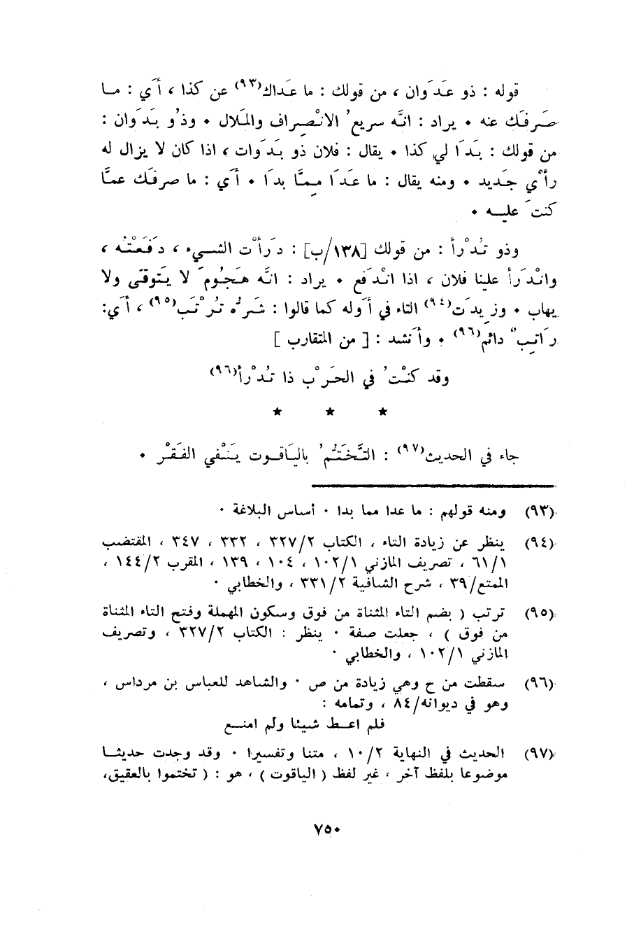 قَوْله: ذُو عدوان من قَوْلك: مَا عداك عَن كَذَا أَي: مَا صرفك عَنهُ. يُرَاد: أَنه سريع الِانْصِرَاف والملال. وَذُو بدوان: من قَوْلك: بدا لي كَذَا. يُقَال: فلَان ذُو بدوات إِذا كَانَ لَا يزَال لَهُ رَأْي جَدِيد. وَمِنْه يُقَال: مَا عدا مِمَّا بدا. أَي: مَا صرفك عَمَّا كنت عَلَيْهِ.