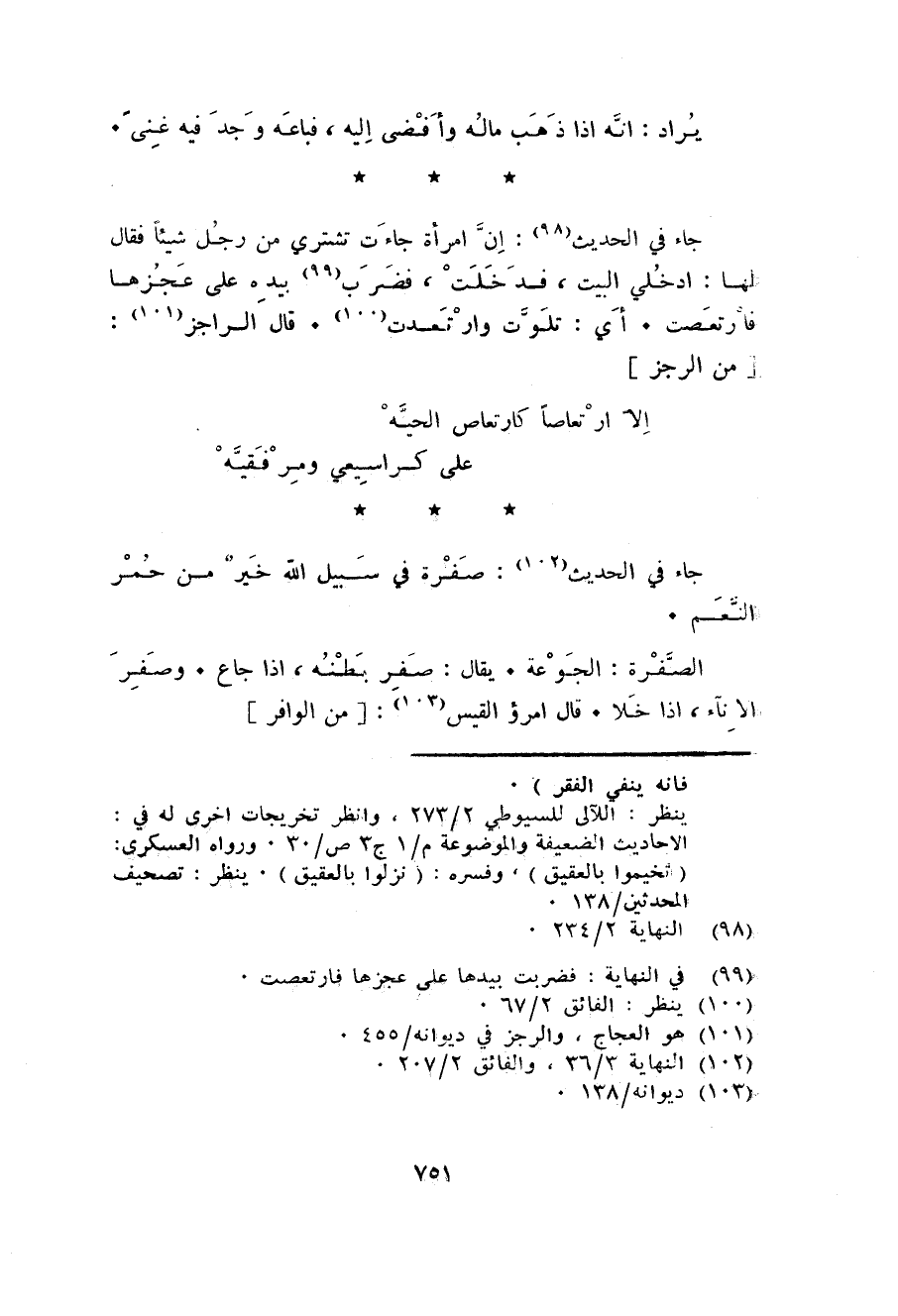 الصُّفْرَة: الجوعة. يُقَال: صفر بَطْنه إِذا جَاع. وصفر الإنآء إِذا خلا. قَالَ امْرُؤ الْقَيْس: من الوافر