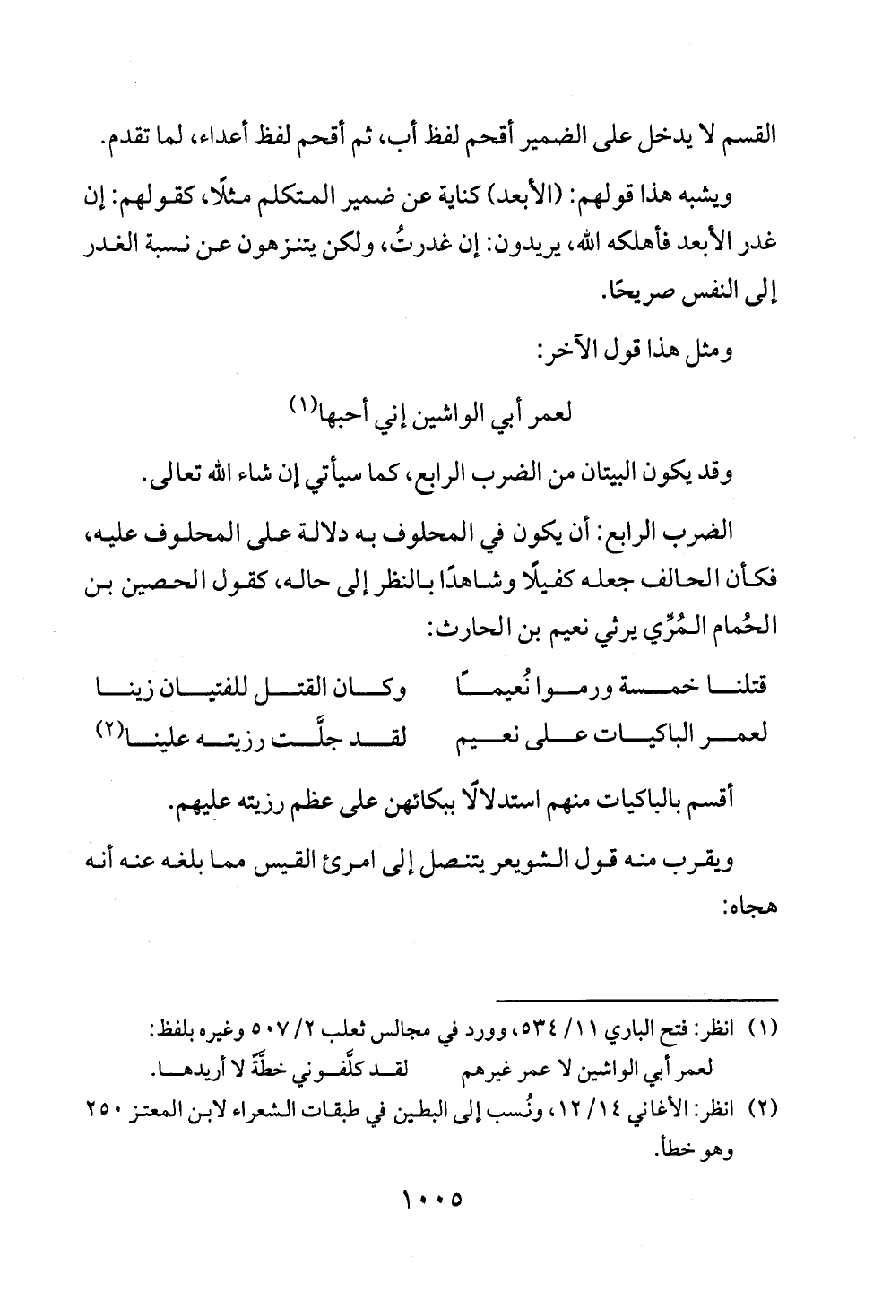 الضرب الرابع: أن يكون في المحلوف به دلالة على المحلوف عليه، فكأن الحالف جعله كفيلًا وشاهدًا بالنظر إلى حاله، كقول الحصين بن الحُمام المُرِّي يرثي نعيم بن الحارث:
