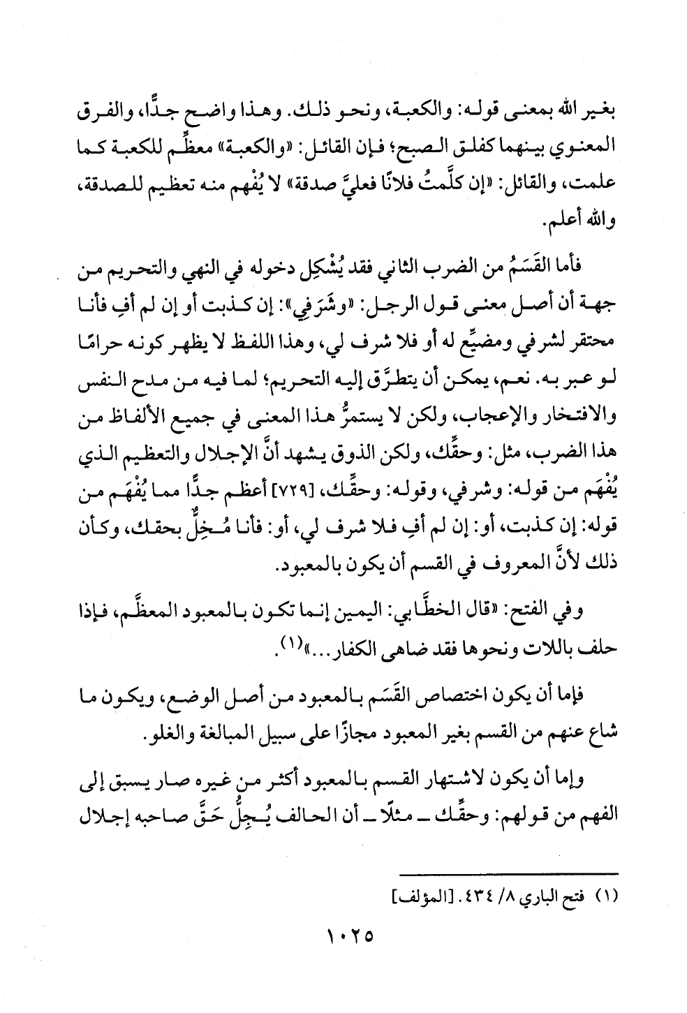 وفي الفتح: «قال الخطَّابي: اليمين إنما تكون بالمعبود المعظَّم، فإذا حلف باللات ونحوها فقد ضاهى الكفار ... » (¬١).