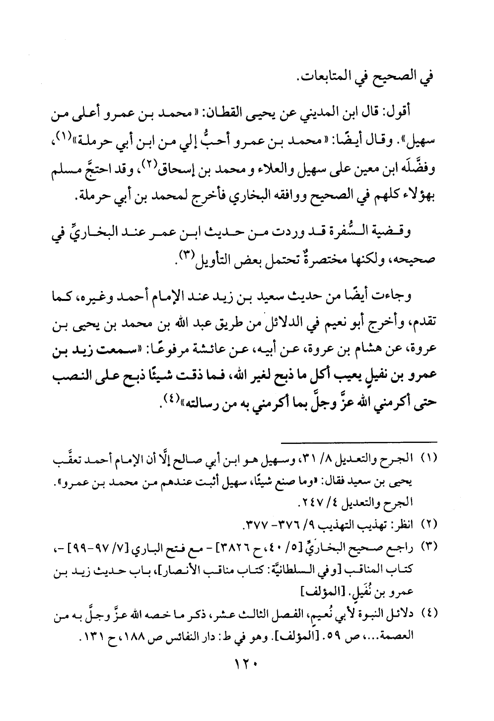 أقول: قال ابن المديني عن يحيى القطان: "محمد بن عمرو أعلى من سهيل". وقال أيضًا: "محمد بن عمرو أحبُّ إلي من ابن أبي حرملة" (¬١)، وفضَّلَه ابن معين على سهيل والعلاء ومحمد بن إسحاق (¬٢)، وقد احتجَّ مسلم بهؤلاء كلهم في الصحيح ووافقه البخاري فأخرج لمحمد بن أبي حرملة.