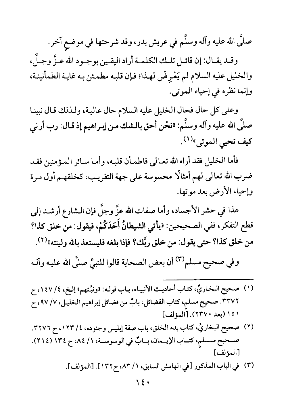 (¬١) صحيح البخاريِّ، كتاب أحاديث الأنبياء، باب قوله: "ونبِّئهم" إلخ، ٤/ ١٤٧، ح ٣٣٧٢. صحيح مسلمٍ، كتاب الفضائل، بابٌ من فضائل إبراهيم الخليل، ٧/ ٩٧، ح ١٥١ (بعد ٢٣٧٠). [المؤلف]