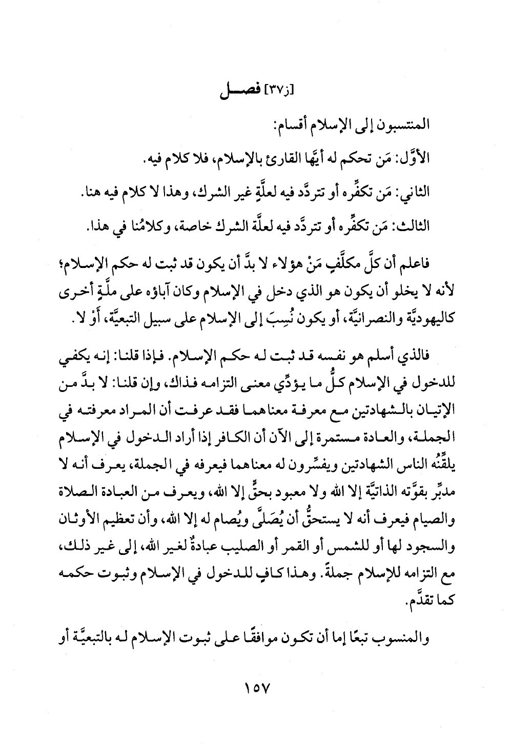 فاعلم أن كلَّ مكلَّفٍ مَنْ هؤلاء لا بدَّ أن يكون قد ثبت له حكم الإسلام؛ لأنه لا يخلو أن يكون هو الذي دخل في الإسلام وكان آباؤه على ملَّةٍ أخرى كاليهوديَّة والنصرانيَّة، أو يكون نُسِبَ إلى الإسلام على سبيل التبعيَّة، أَوْ لا.