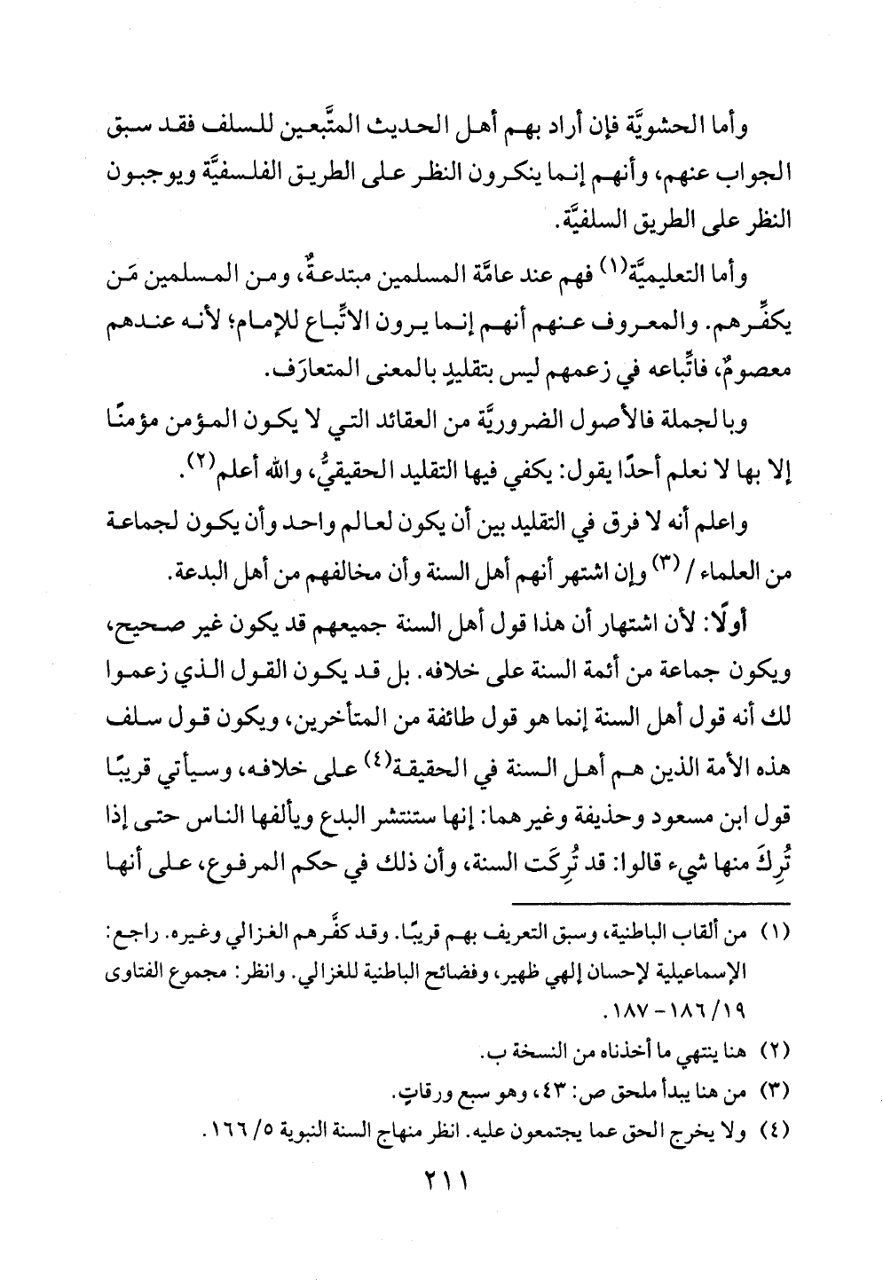 وأما الحشويَّة فإن أراد بهم أهل الحديث المتَّبعين للسلف فقد سبق الجواب عنهم، وأنهم إنما ينكرون النظر على الطريق الفلسفيَّة ويوجبون النظر على الطريق السلفيَّة.