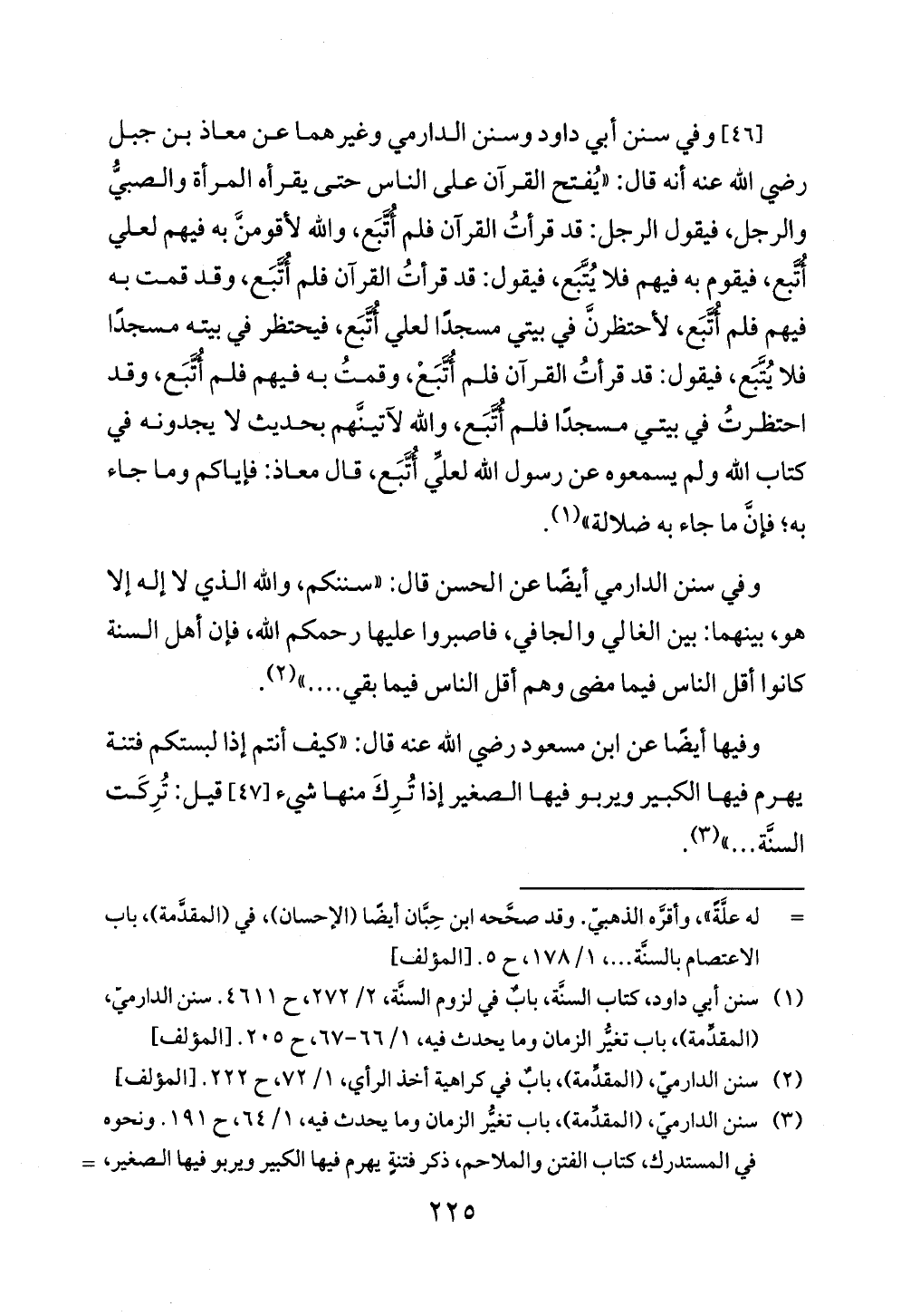 (¬٢) سنن الدارميّ، (المقدِّمة)، بابٌ في كراهية أخذ الرأي، ١/ ٧٢، ح ٢٢٢. [المؤلف]