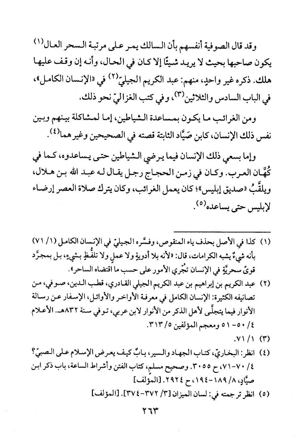 وإما بسعي ذلك الإنسان فيما يرضي الشياطين حتى يساعدوه, كما في كُهَّان العرب. وكان في زمن الحجاج رجل يقال له عبد الله بن هلال، ويلقَّبُ «صديق إبليس»؛ كان يعمل الغرائب، وكان يترك صلاة العصر إرضاء لإبليس حتى يساعده (¬٥).