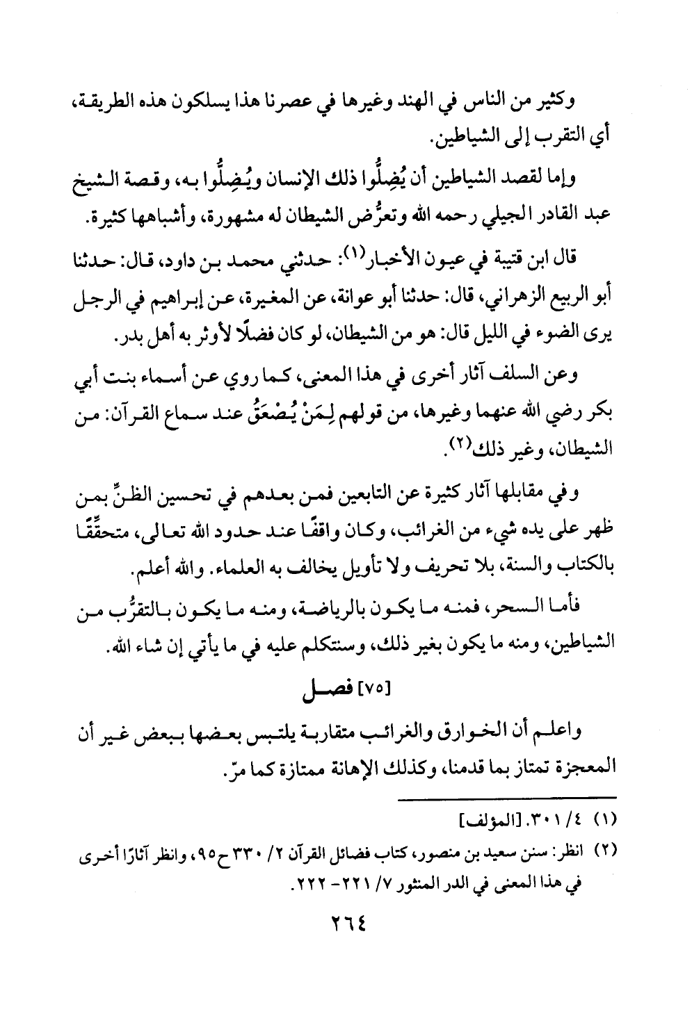 فأما السحر، فمنه ما يكون بالرياضة، ومنه ما يكون بالتقرُّب من الشياطين، ومنه ما يكون بغير ذلك، وسنتكلم عليه في ما يأتي إن شاء الله.