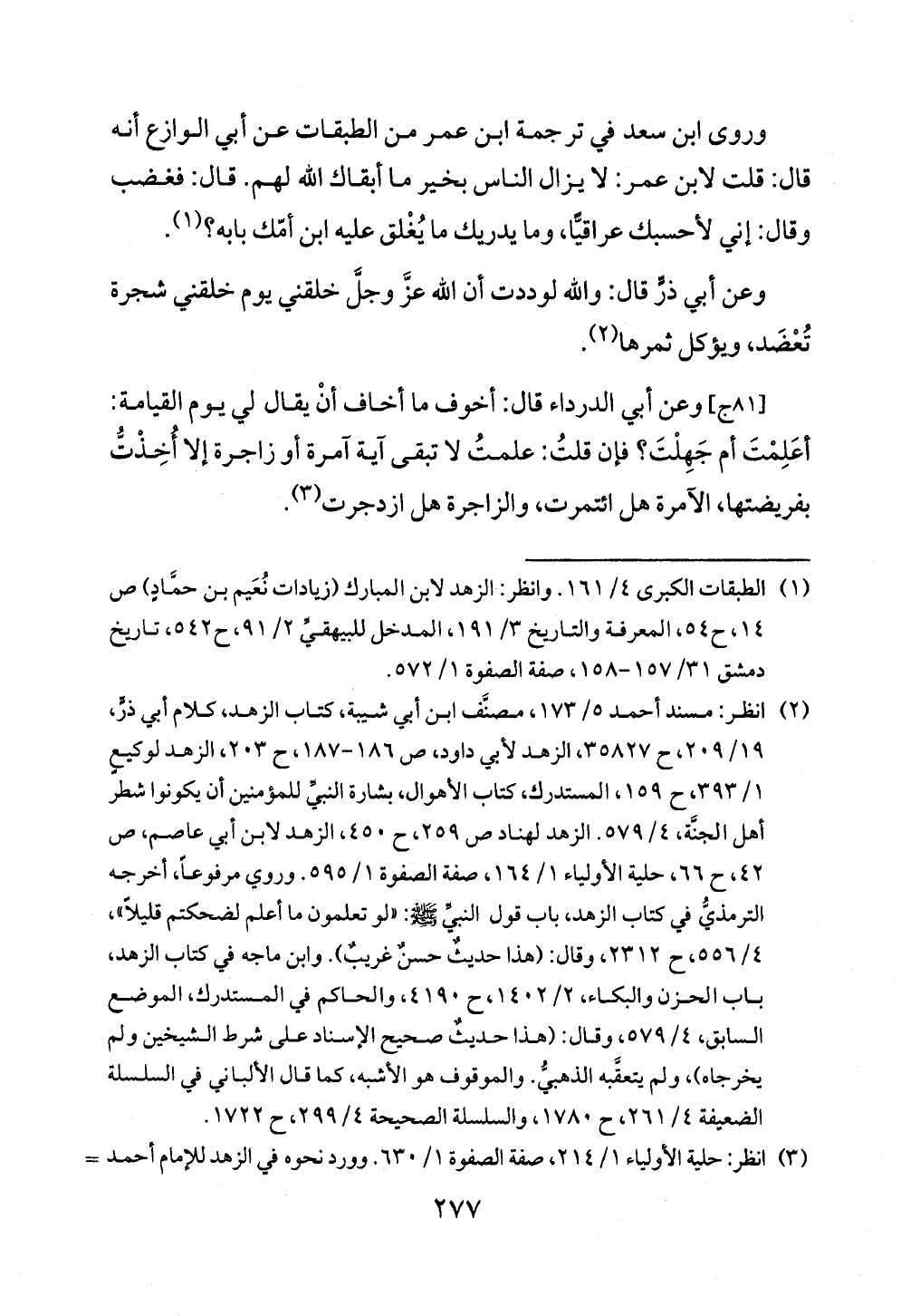 (¬١) الطبقات الكبرى ٤/ ١٦١. وانظر: الزهد لابن المبارك (زيادات نُعَيم بن حمَّادٍ) ص ١٤، ح ٥٤، المعرفة والتاريخ ٣/ ١٩١، المدخل للبيهقيِّ ٢/ ٩١، ح ٥٤٢، تاريخ دمشق ٣١/ ١٥٧ - ١٥٨، صفة الصفوة ١/ ٥٧٢.