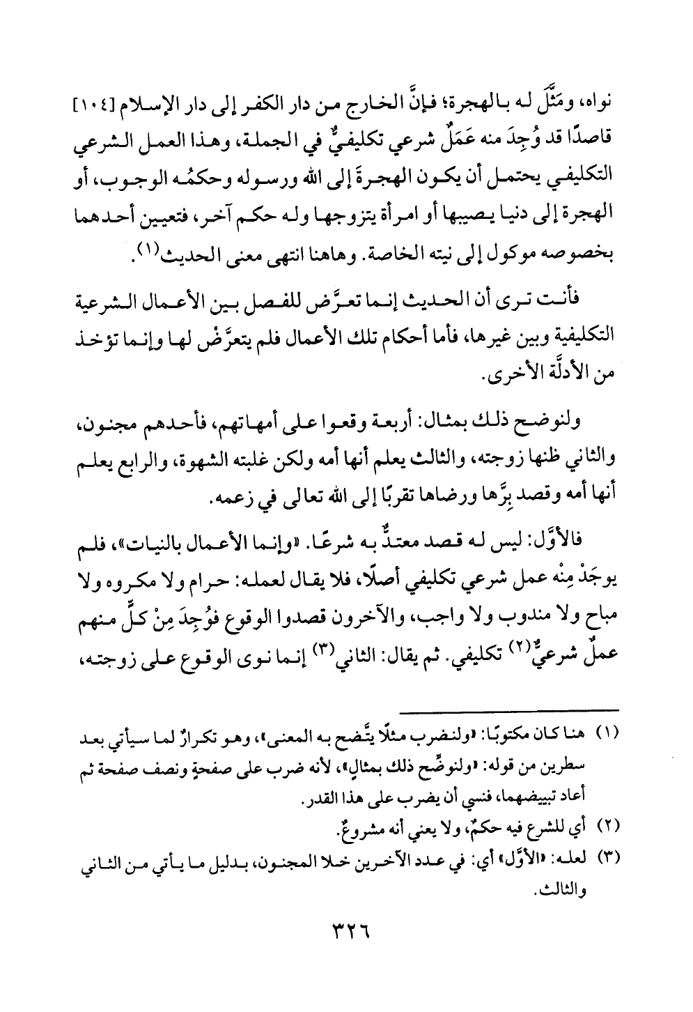 فالأوَّل: ليس له قصد معتدٌّ به شرعًا. «وإنما الأعمال بالنيات»، فلم يوجَدْ مِنْه عمل شرعي تكليفي أصلًا، فلا يقال لعمله: حرام ولا مكروه ولا مباح ولا مندوب ولا واجب، والآخرون قصدوا الوقوع فوُجِدَ مِنْ كلٍّ منهم عملٌ شرعيٌّ (¬٢) تكليفي. ثم يقال: الثاني (¬٣) إنما نوى الوقوع على زوجته،