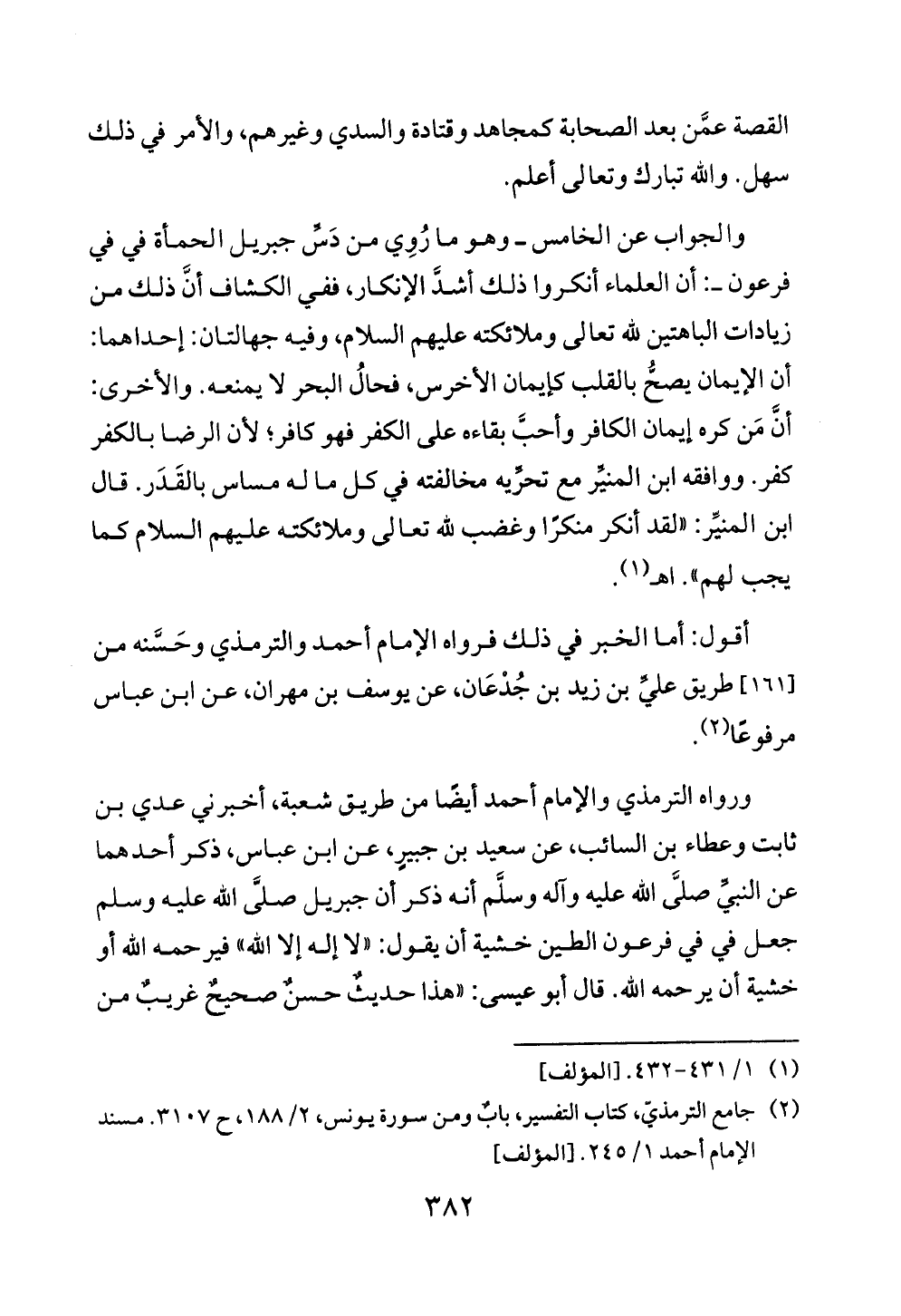 (¬٢) جامع الترمذيّ، كتاب التفسير، بابٌ ومن سورة يونس، ٢/ ١٨٨، ح ٣١٠٧. مسند الإمام أحمد ١/ ٢٤٥. [المؤلف]