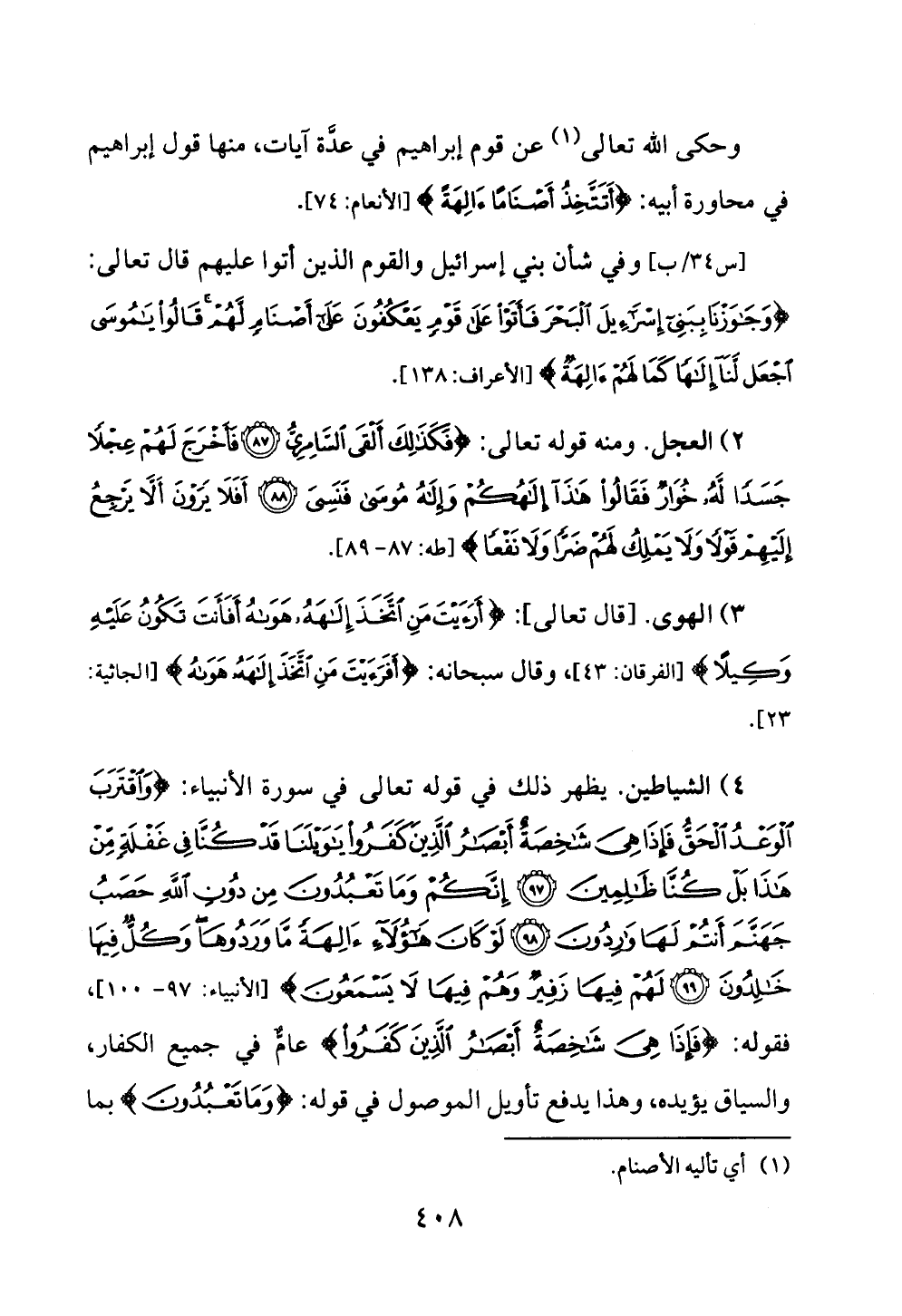 ٣) الهوى. [قال تعالى]: {أَرَأَيْتَ مَنِ اتَّخَذَ إِلَهَهُ هَوَاهُ أَفَأَنْتَ تَكُونُ عَلَيْهِ وَكِيلًا} [الفرقان: ٤٣]، وقال سبحانه: {أَفَرَأَيْتَ مَنِ اتَّخَذَ إِلَهَهُ هَوَاهُ} [الجاثية: ٢٣].