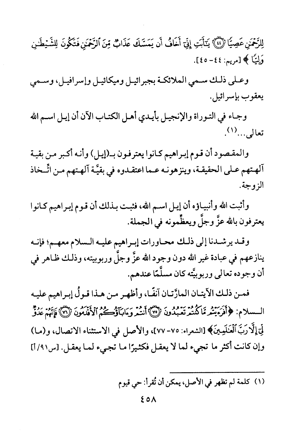 وأثبت الله وأنبياؤه أن إيل اسم الله، فثبت بذلك أن قوم إبراهيم كانوا يعترفون بالله عزَّ وجلَّ ويعظِّمونه في الجملة.