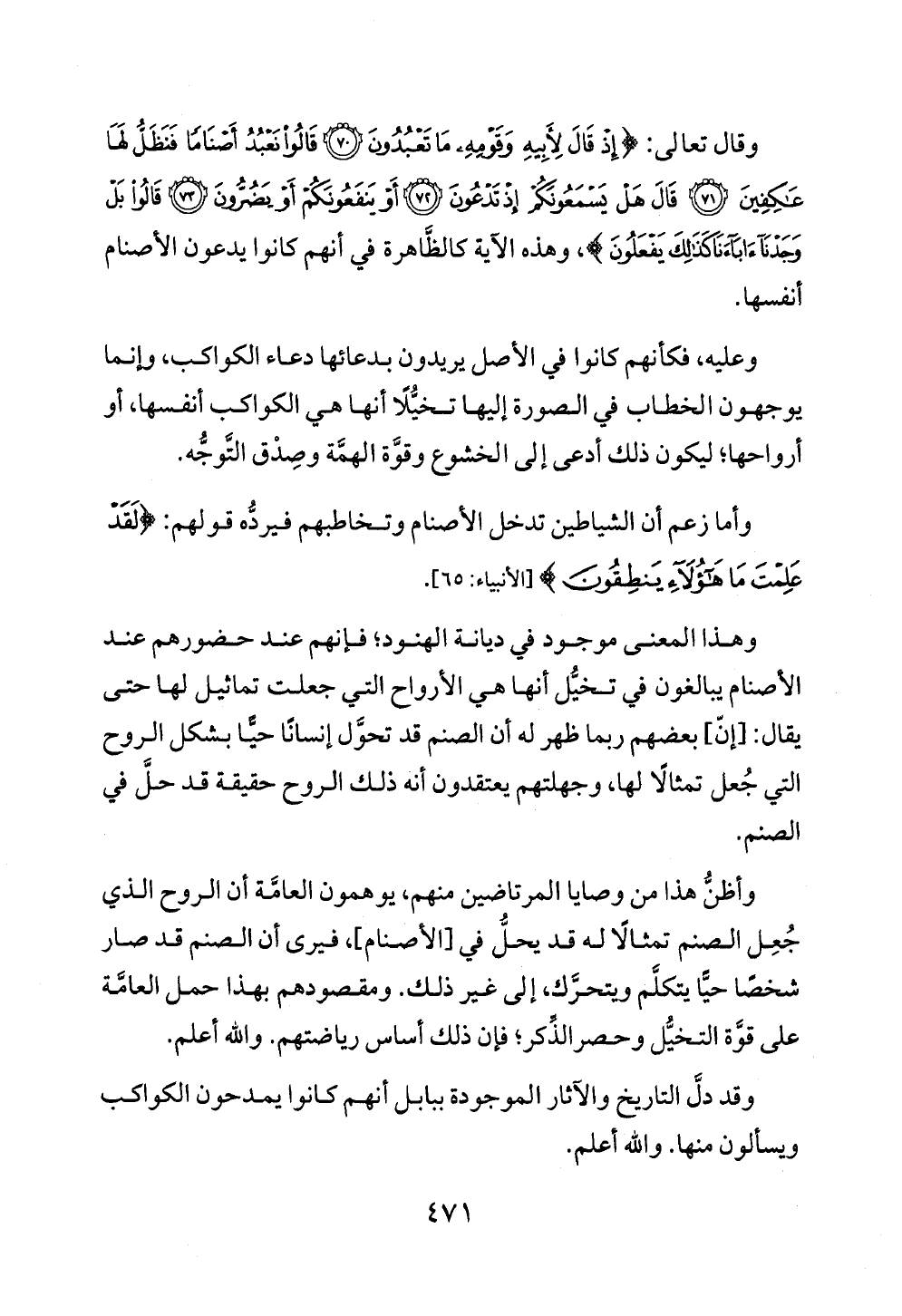 وقد دلَّ التاريخ والآثار الموجودة ببابل أنهم كانوا يمدحون الكواكب ويسألون منها. والله أعلم.