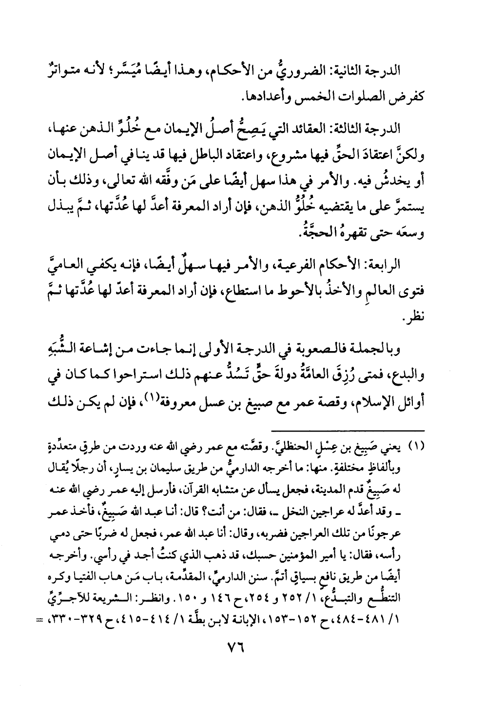 وبالجملة فالصعوبة في الدرجة الأولى إنما جاءت من إشاعة الشُّبَهِ والبدع، فمتى رُزِقَ العامَّةُ دولةَ حقٍّ تَسُدُّ عنهم ذلك استراحوا كما كان في أوائل الإسلام، وقصة عمر مع صبيغ بن عسل معروفة (¬١)، فإن لم يكن ذلك