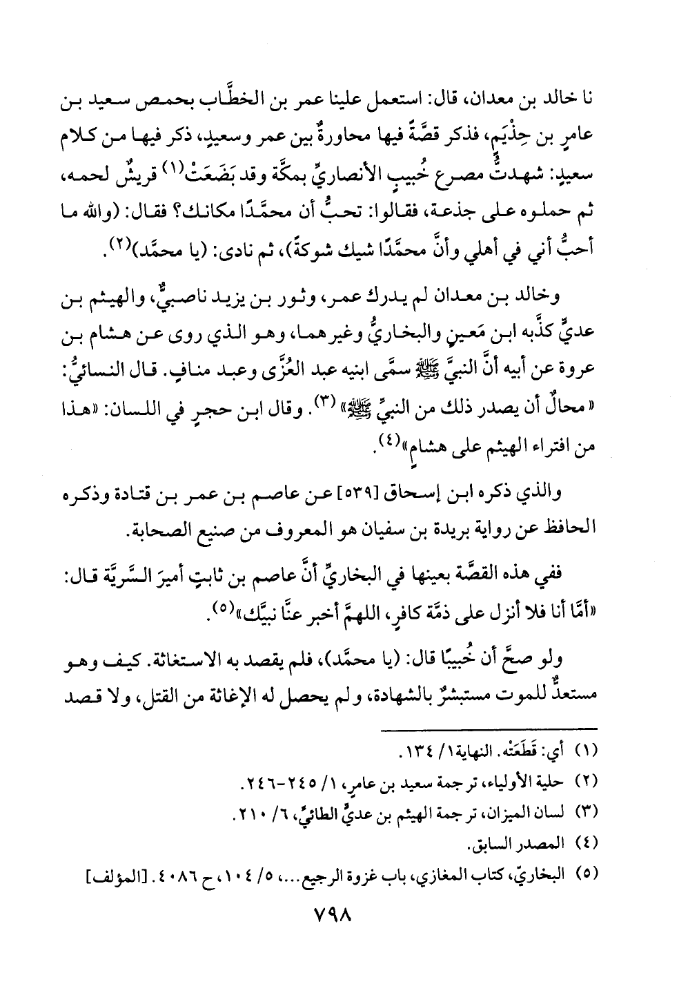 (¬٥) البخاريّ، كتاب المغازي، باب غزوة الرجيع ... ، ٥/ ١٠٤، ح ٤٠٨٦. [المؤلف]