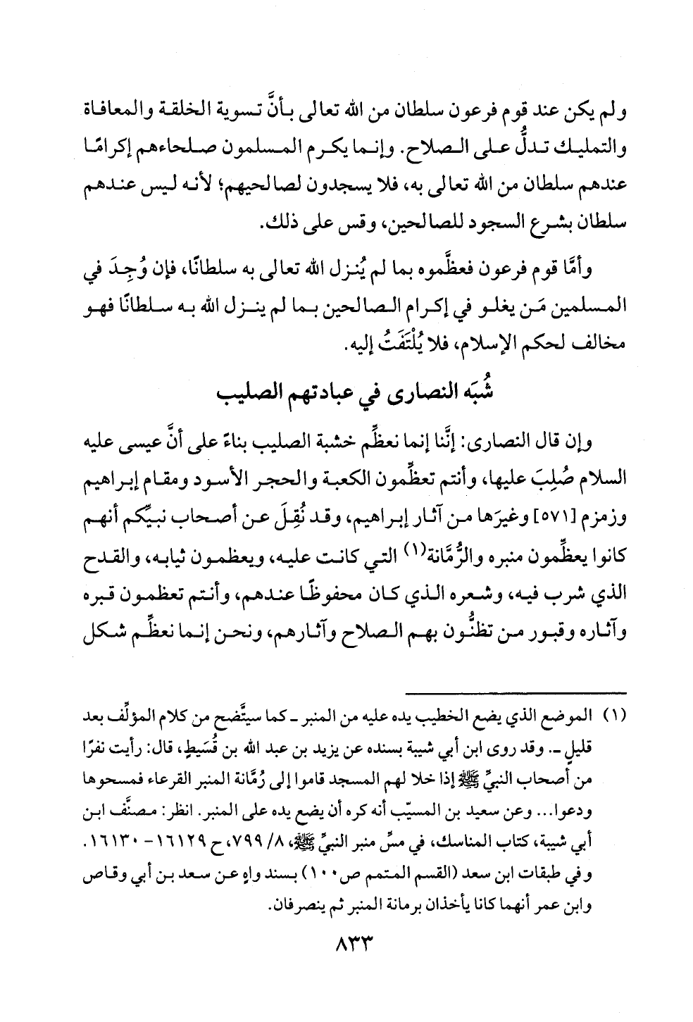 وإن قال النصارى: إنَّنا إنما نعظِّم خشبة الصليب بناءً على أنَّ عيسى عليه السلام صُلِبَ عليها, وأنتم تعظِّمون الكعبة والحجر الأسود ومقام إبراهيم وزمزم [٥٧١] وغيرَها من آثار إبراهيم، وقد نُقِلَ عن أصحاب نبيِّكم أنهم كانوا يعظِّمون منبره والرُّمَّانة (¬١) التي كانت عليه، ويعظمون ثيابه، والقدح الذي شرب فيه، وشعره الذي كان محفوظًا عندهم، وأنتم تعظمون قبره وآثاره وقبور من تظنُّون بهم الصلاح وآثارهم، ونحن إنما نعظِّم شكل