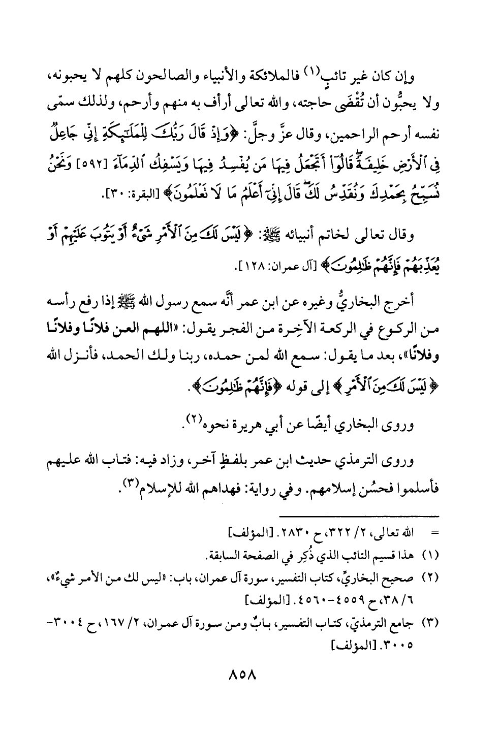 (¬٢) صحيح البخاريِّ، كتاب التفسير، سورة آل عمران، باب: «ليس لك من الأمر شيءٌ»، ٦/ ٣٨، ح ٤٥٥٩ - ٤٥٦٠. [المؤلف]
