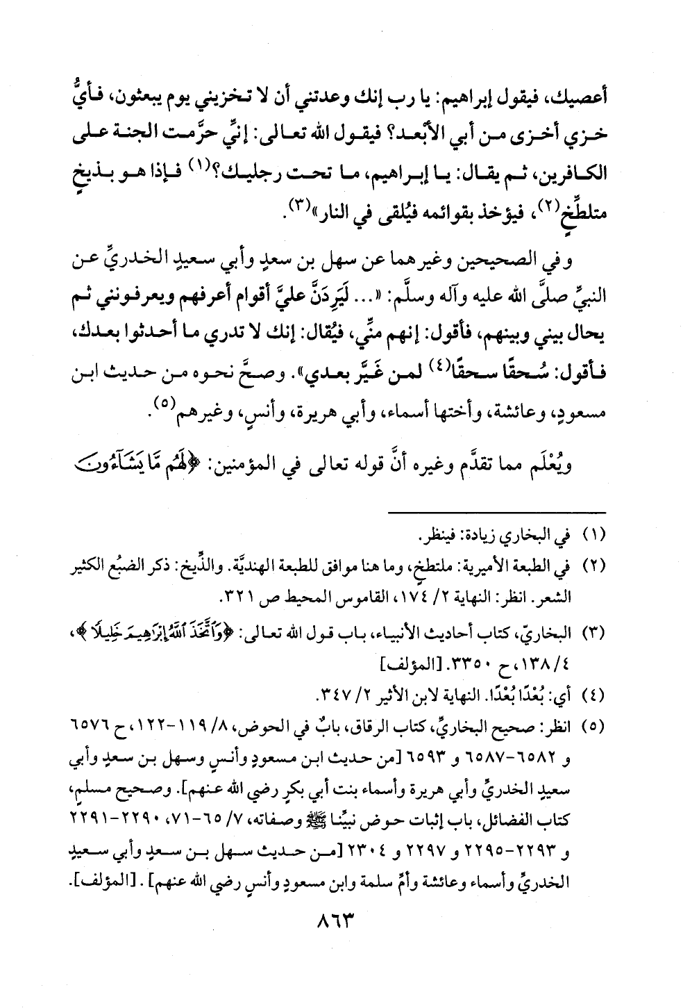 (¬٣) البخاريّ، كتاب أحاديث الأنبياء، باب قول الله تعالى: {وَاتَّخَذَ اللَّهُ إِبْرَاهِيمَ خَلِيلًا}، ٤/ ١٣٨، ح ٣٣٥٠. [المؤلف]