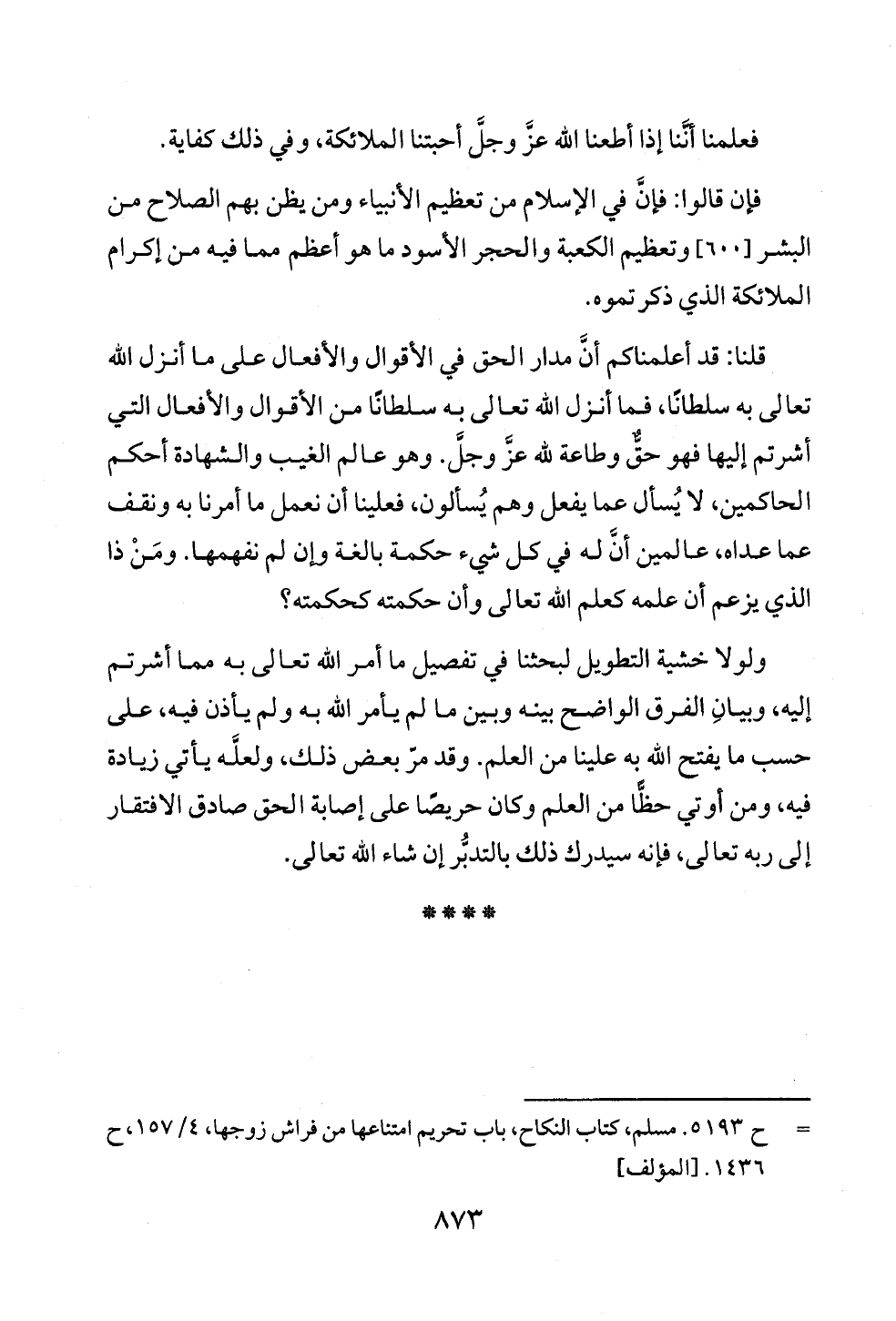 فإن قالوا: فإنَّ في الإسلام من تعظيم الأنبياء ومن يظن بهم الصلاح من البشر [٦٠٠] وتعظيم الكعبة والحجر الأسود ما هو أعظم مما فيه من إكرام الملائكة الذي ذكرتموه.