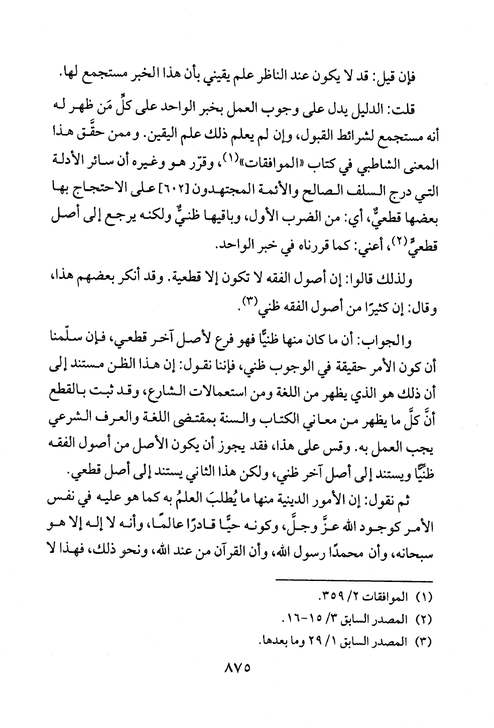 ولذلك قالوا: إن أصول الفقه لا تكون إلا قطعية. وقد أنكر بعضهم هذا، وقال: إن كثيرًا من أصول الفقه ظني (¬٣).