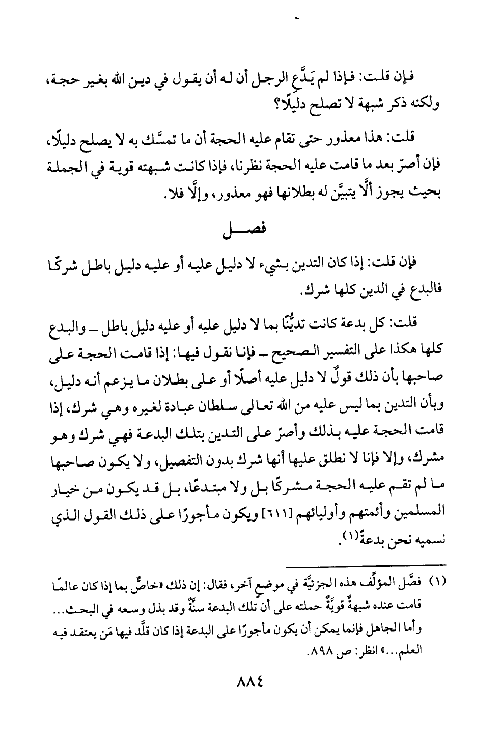 فإن قلت: فإذا لم يَدَّعِ الرجل أن له أن يقول في دين الله بغير حجة، ولكنه ذكر شبهة لا تصلح دليلًا؟