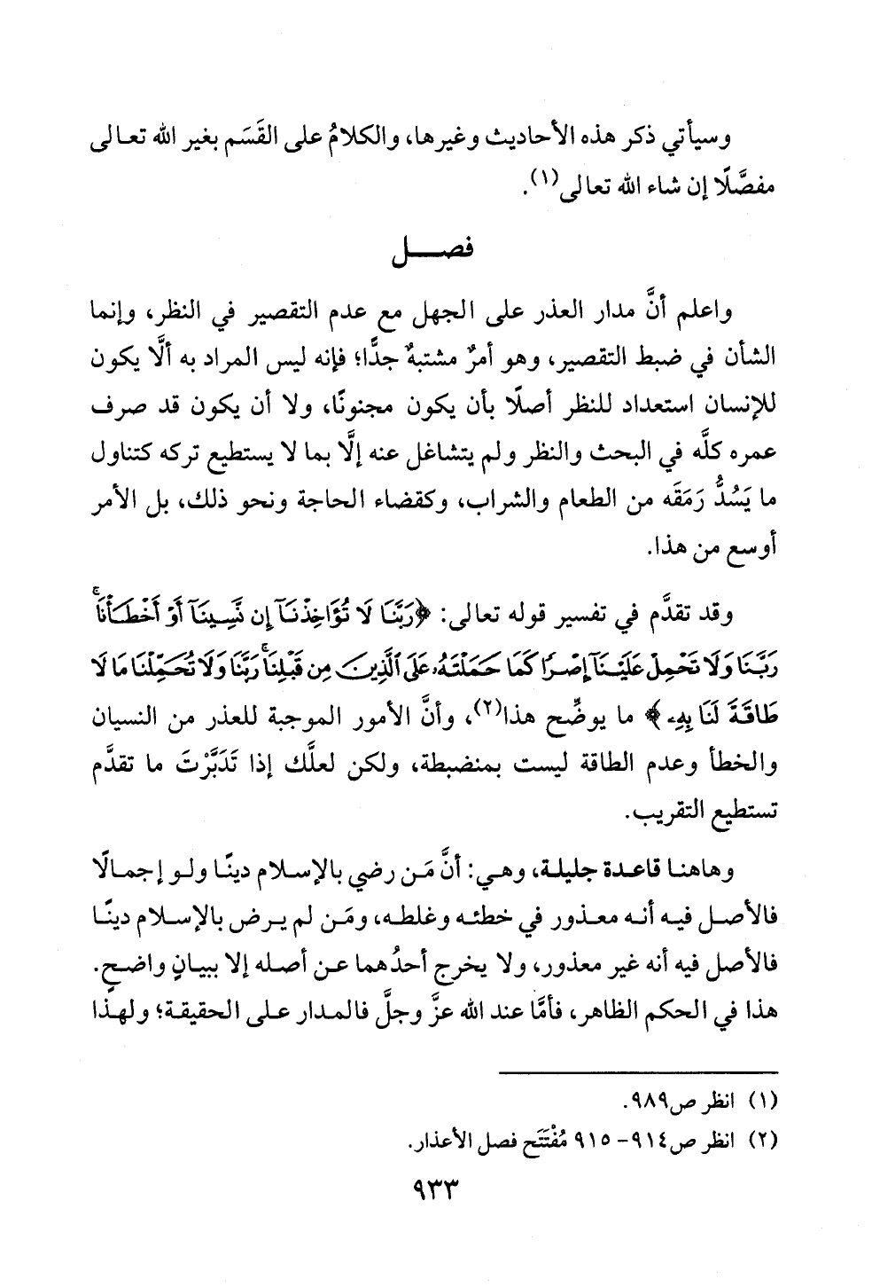 (¬٢) انظر ص ٩١٤ - ٩١٥ مُفْتَتَح فصل الأعذار.