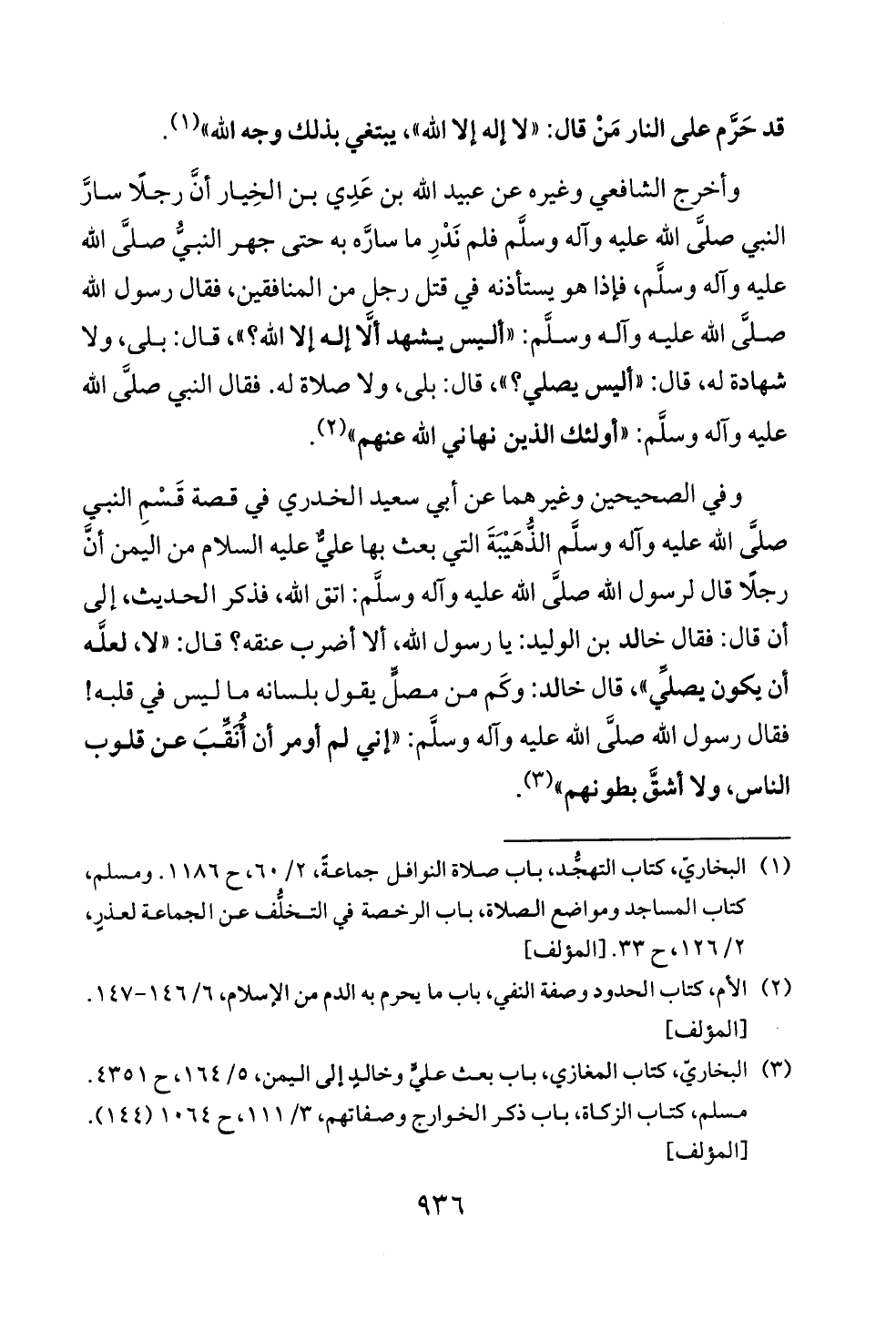 (¬٣) البخاريّ، كتاب المغازي، باب بعث عليٍّ وخالدٍ إلى اليمن، ٥/ ١٦٤، ح ٤٣٥١. مسلم، كتاب الزكاة، باب ذكر الخوارج وصفاتهم، ٣/ ١١١، ح ١٠٦٤ (١٤٤). [المؤلف]