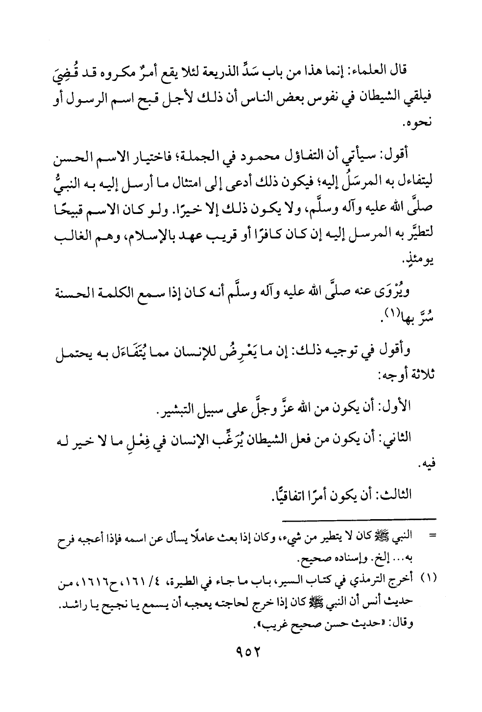وأقول في توجيه ذلك: إن ما يَعْرِضُ للإنسان مما يُتَفَاءَل به يحتمل ثلاثة أوجه: