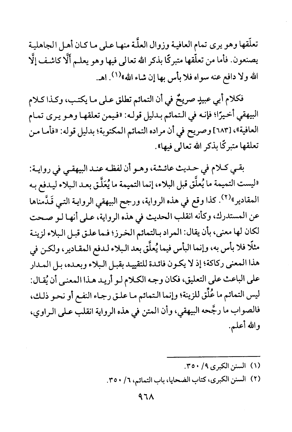 (¬٢) السنن الكبرى، كتاب الضحايا، باب التمائم، ٦/ ٣٥٠.