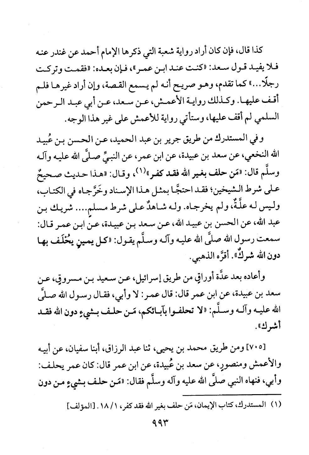 (¬١) المستدرك، كتاب الإيمان، مَن حلف بغير الله فقد كفر، ١/ ١٨. [المؤلف]