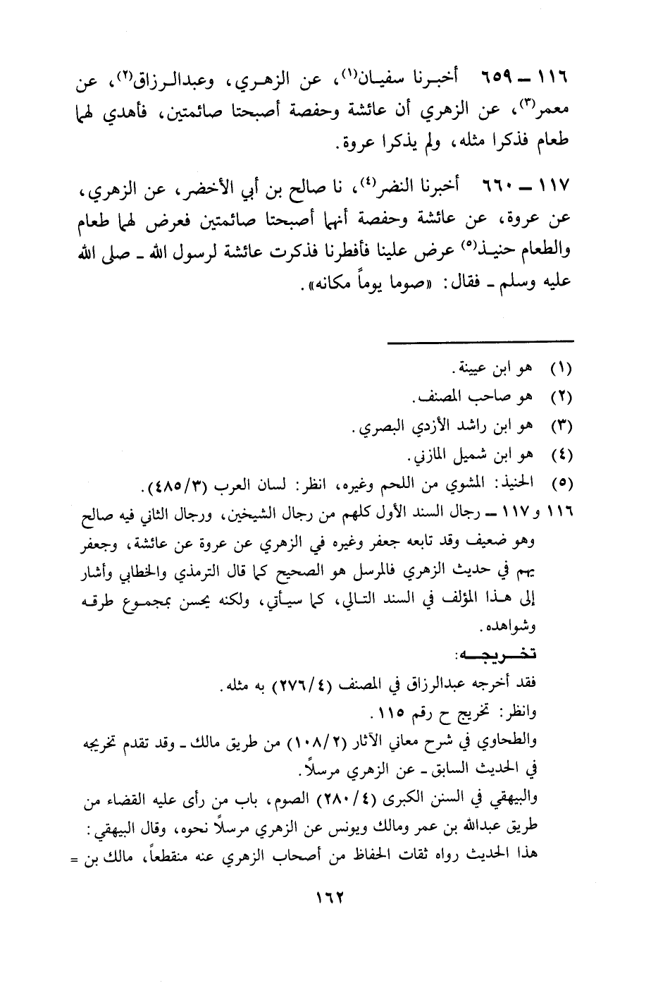 660 - أَخْبَرَنَا النَّضْرُ، نا صَالِحُ بْنُ أَبِي الْأَخْضَرِ، عَنِ الزُّهْرِيِّ، عَنْ عُرْوَةَ، عَنْ عَائِشَةَ، وَحَفْصَةَ أَنَّهُمَا أَصْبَحَتَا صَائِمَتَيْنِ، فَعَرَضَ لَهُمَا طَعَامٌ، وَالطَّعَامُ حَنِيذٌ عُرِضَ عَلَيْنَا فَأَفْطَرْنَا، فَذَكَرَتْ عَائِشَةُ لِرَسُولِ اللَّهِ صَلَّى اللهُ عَلَيْهِ وَسَلَّمَ فَقَالَ: «§صُومَا يَوْمًا مَكَانَهُ» ،