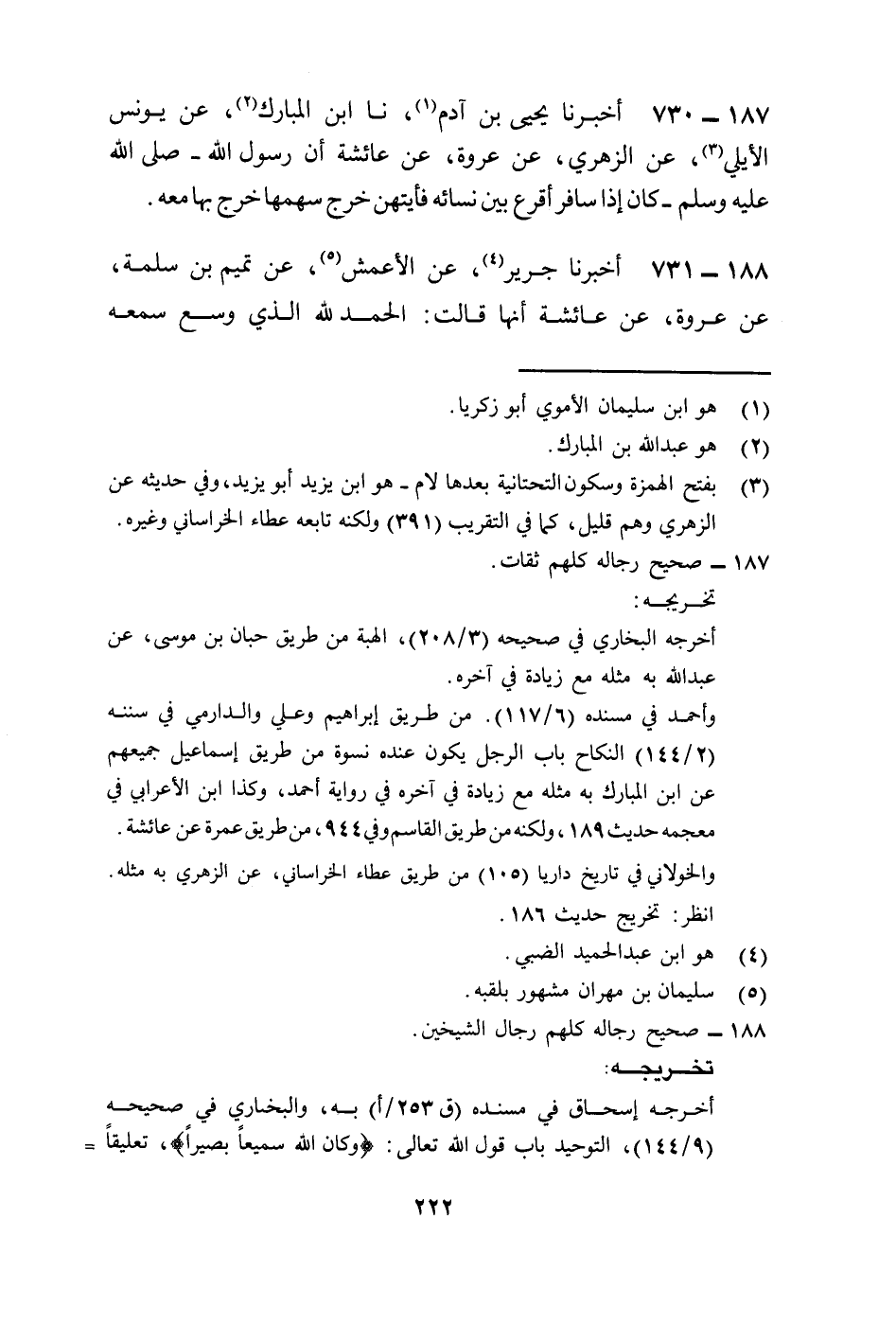730 - أَخْبَرَنَا يَحْيَى بْنُ آدَمَ، نا ابْنُ الْمُبَارَكِ، عَنْ يُونُسَ الْأَيْلِيِّ، عَنِ الزُّهْرِيِّ، عَنْ عُرْوَةَ، عَنْ عَائِشَةَ أَنَّ رَسُولَ اللَّهِ صَلَّى اللهُ عَلَيْهِ وَسَلَّمَ كَانَ §إِذَا سَافَرَ أَقْرَعَ بَيْنَ نِسَائِهِ فَأَيَّتُهُنَّ خَرَجَ سَهْمُهَا خَرَجَ بِهَا مَعَهُ