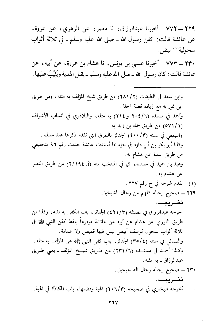 772 - أَخْبَرَنَا عَبْدُ الرَّزَّاقِ، نا مَعْمَرٌ، عَنِ الزُّهْرِيِّ، عَنْ عُرْوَةَ، عَنْ عَائِشَةَ، قَالَتْ: «§كُفِّنَ رَسُولُ اللَّهِ صَلَّى اللهُ عَلَيْهِ وَسَلَّمَ فِي ثَلَاثَةِ أَثْوَابٍ سَحُولِيَّةٍ بِيضٍ»