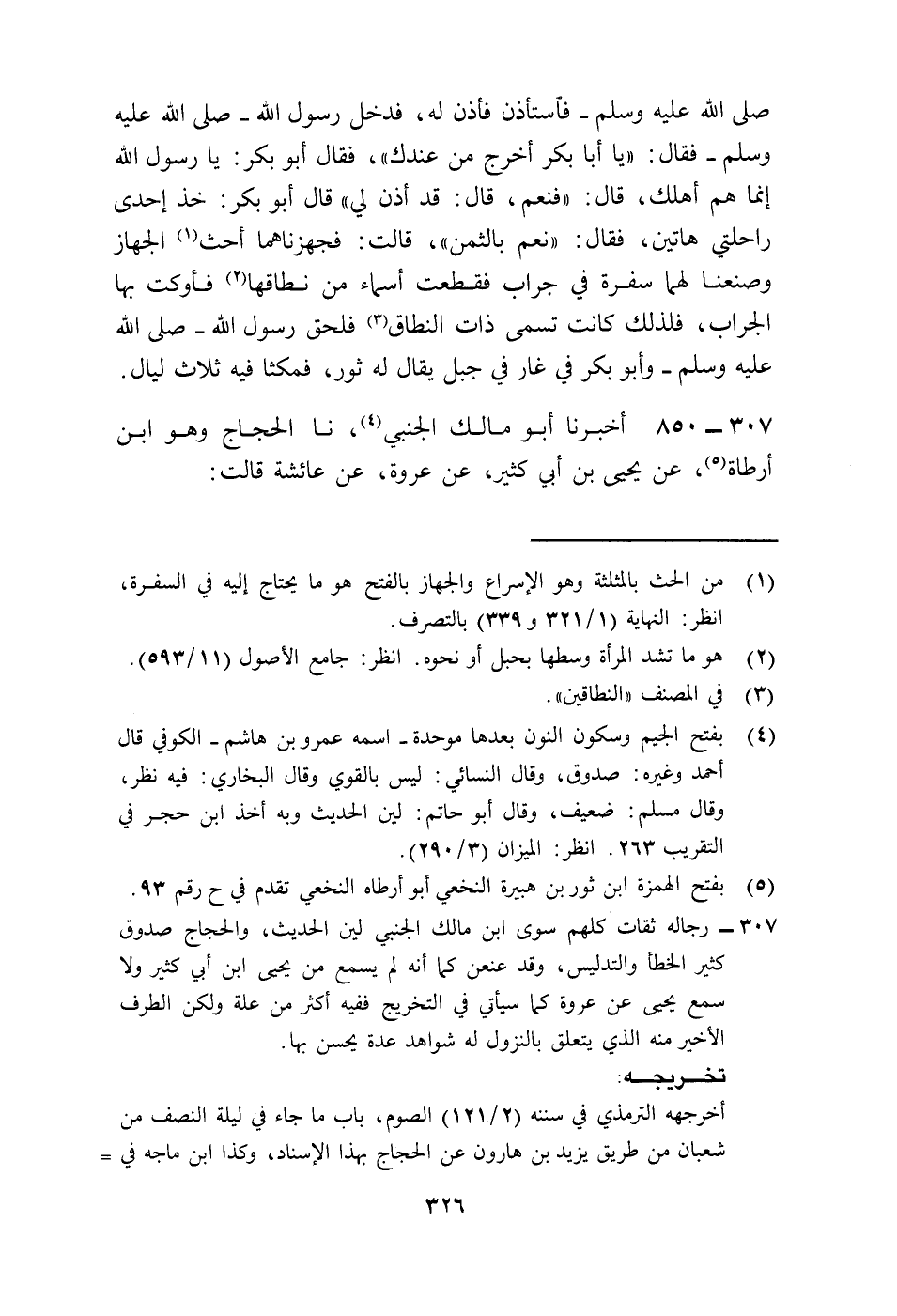 850 - أَخْبَرَنَا أَبُو مَالِكٍ الْجَنَبِيُّ، نا الْحَجَّاجُ وَهُوَ ابْنُ أَرْطَاةَ عَنْ يَحْيَى بْنِ أَبِي كَثِيرٍ، عَنْ عُرْوَةَ، عَنْ عَائِشَةَ، قَالَتْ -[327]-: فَقَدْتُ رَسُولَ اللَّهِ صَلَّى اللهُ عَلَيْهِ وَسَلَّمَ ذَاتَ لَيْلَةٍ فَخَرَجْتُ فِي أَثَرِهِ فَإِذَا رَسُولُ اللَّهِ صَلَّى اللهُ عَلَيْهِ وَسَلَّمَ فِي الْبَقِيعِ رَافِعًا يَدَيْهِ إِلَى السَّمَاءِ يَدْعُو فَقَالَ رَسُولُ اللَّهِ صَلَّى اللهُ عَلَيْهِ وَسَلَّمَ: «يَا بِنْتَ أَبِي بَكْرٍ مَا الَّذِي أَخْرَجَكَ؟» فَقَالَتْ: أَشْفَقْتُ أَوْ خِفْتُ أَنْ تَكُونَ خَرَجْتَ إِلَى بَعْضِ نِسَائِكَ فَقَالَ: «مَا أَخْرَجَكِ؟» ثُمَّ قَالَ: «§إِذَا كَانَ لَيْلَةُ النِّصْفِ مِنْ شَعْبَانَ يَنْزِلُ الرَّبُّ تَبَارَكَ وَتَعَالَى إِلَى السَّمَاءِ الدُّنْيَا فَيَغْفِرُ مِنَ الذُّنُوبِ أَكْثَرَ مِنْ عَدَدِ شَعْرِ غَنَمِ كَلْبٍ»