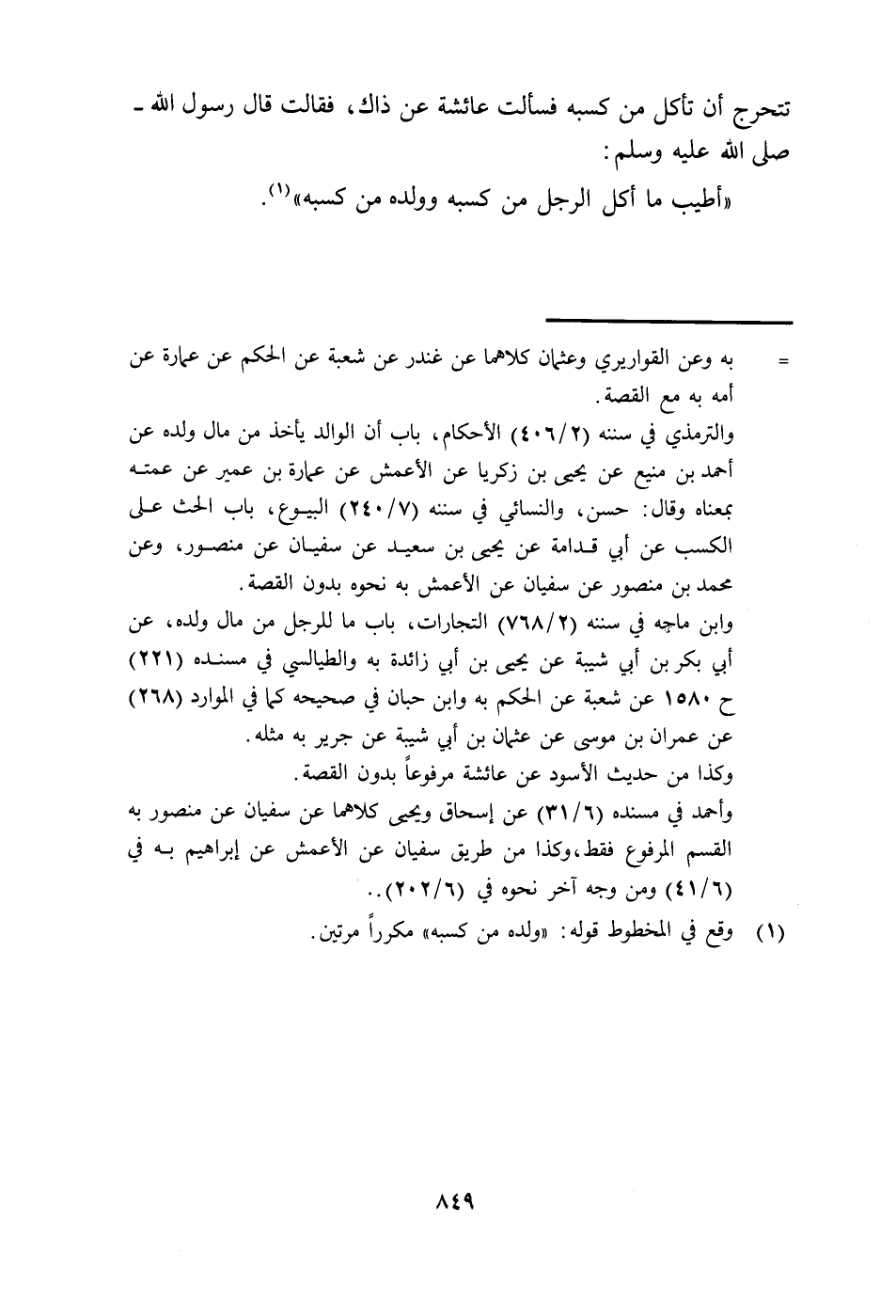 (1) في حاشية المطبوع : وقع في المخطوط قوله : "ولده من كسبه" مكررا مرتين.